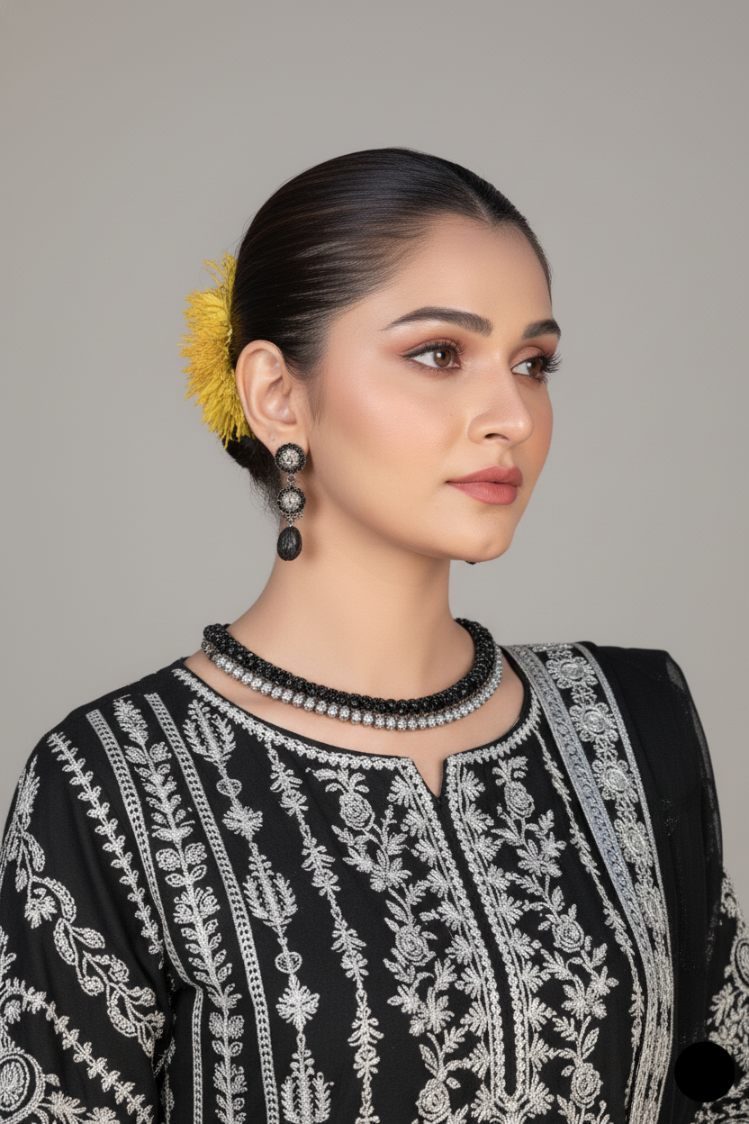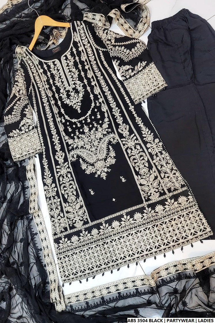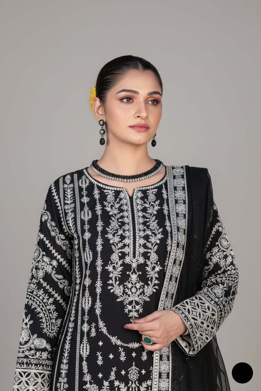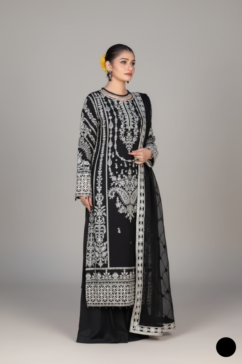This elegant ensemble features an A-line shirt made from premium chiffon fabric, offering a graceful and flowy silhouette. The outfit is paired with a grip fabric trouser that provides a structured and comfortable fit, while the matching chiffon dupatta enhances the overall sophisticated look. With a shirt length of 46/48 inches and a total weight of 1.100 kg, this outfit is perfect for formal events, festive occasions, or stylish evening wear.