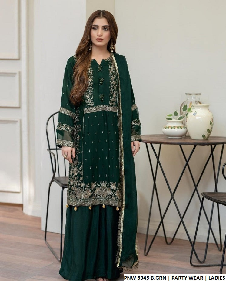 1. This chic outfit features a straight shirt made from chiffon, offering a light and airy feel, perfect for a stylish look. The shirt is paired with a plazo crafted from viscose, providing a smooth and comfortable fit. The dupatta is also made from chiffon, enhancing the overall elegance of the ensemble. Available in shirt lengths of 39 and 41 inches, the outfit offers a versatile fit for different preferences. With a weight of 0.650 kg, this outfit strikes the perfect balance between comfort and sophistication, making it an ideal choice for both casual and formal occasions.
