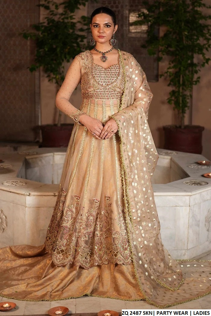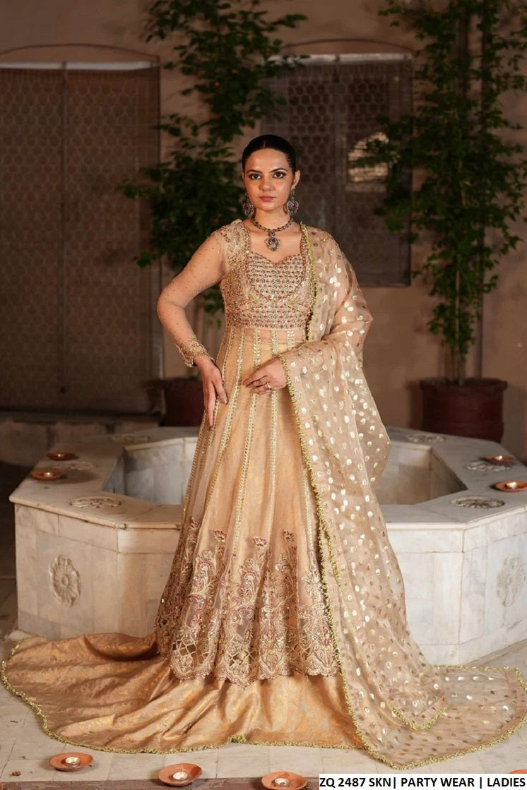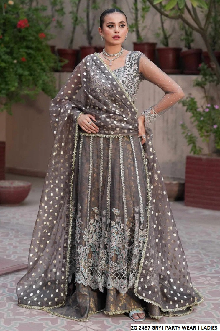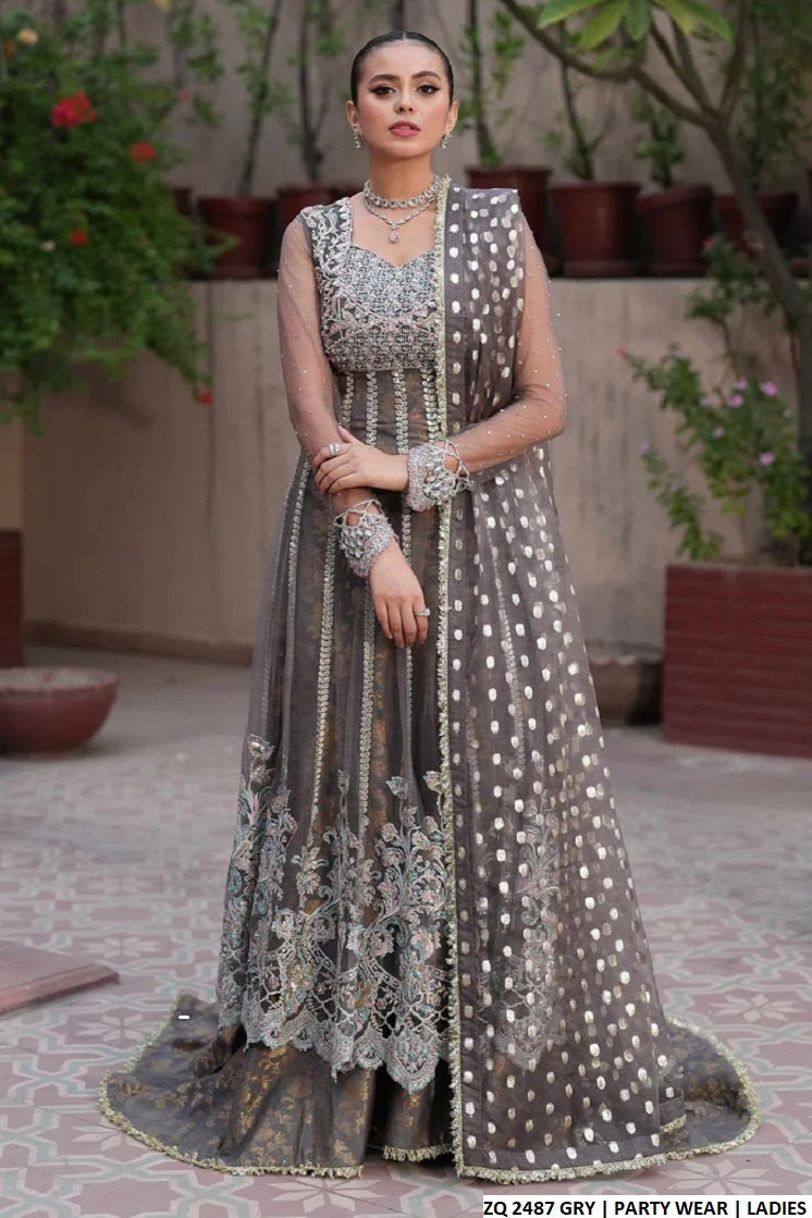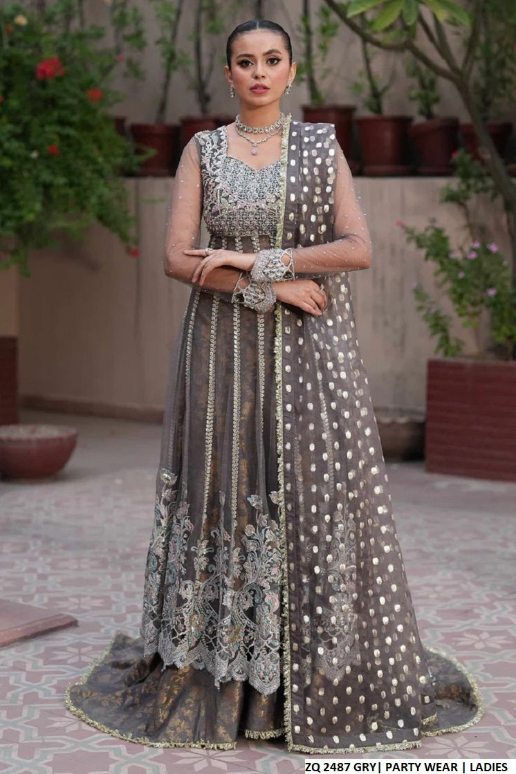 This elegant outfit features a beautifully designed long frock-style shirt made from delicate net fabric. The trousers are crafted from luxurious jamawar, providing a rich texture and finish. Complementing the ensemble is a graceful organza dupatta, adding a touch of sophistication. With a shirt length ranging between 48 to 50 inches and a total weight of 1.450 kg, this outfit is a perfect blend of elegance and comfort, ideal for formal events and special occasions.