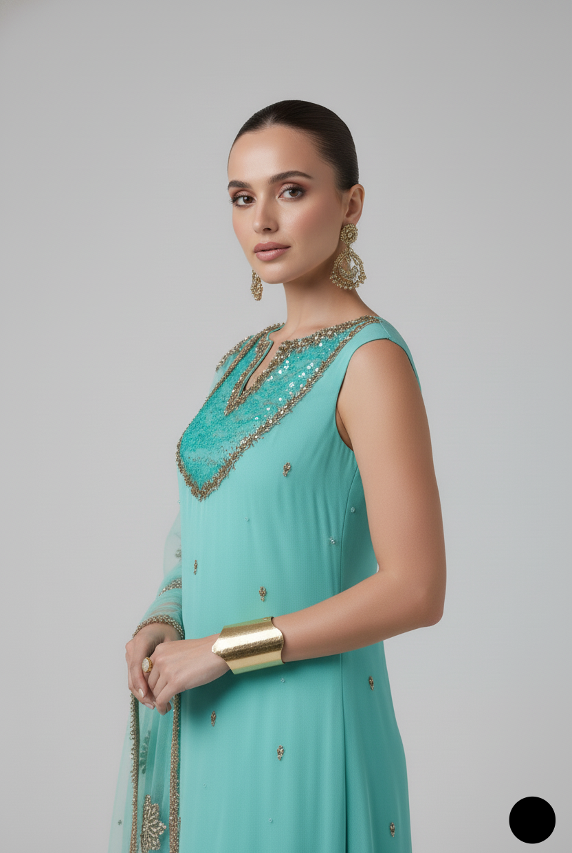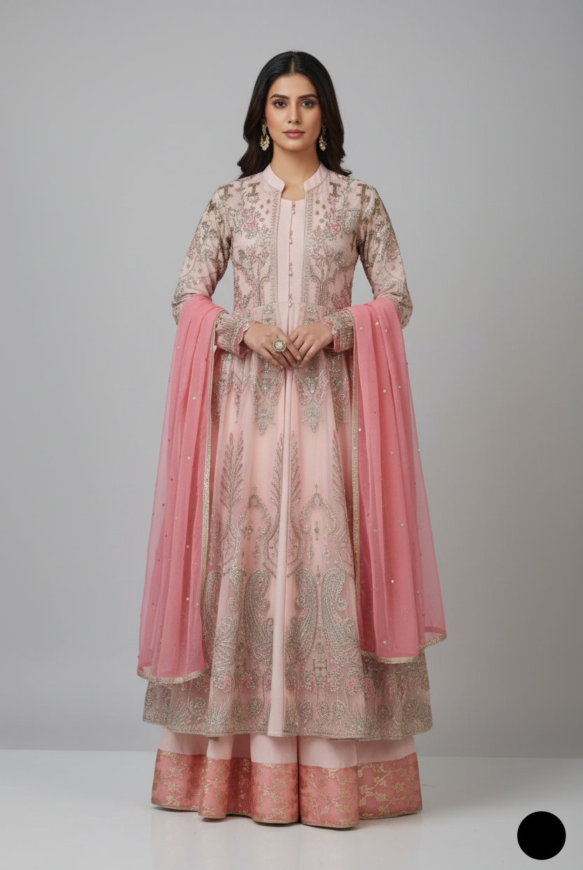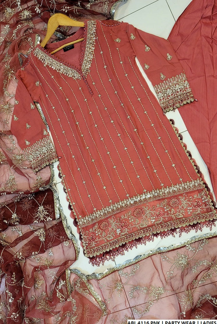 Crafted with high-quality fabrics, Party Wear All ensures comfort without compromising on style. From flowing frocks and designer suits to coordinated sets with matching dupattas or accessories, every piece in Party Wear All is thoughtfully designed for durability, elegance, and flair. Pair these outfits with matching jewelry, shoes, and handbags to create a complete look that exudes sophistication and charm.