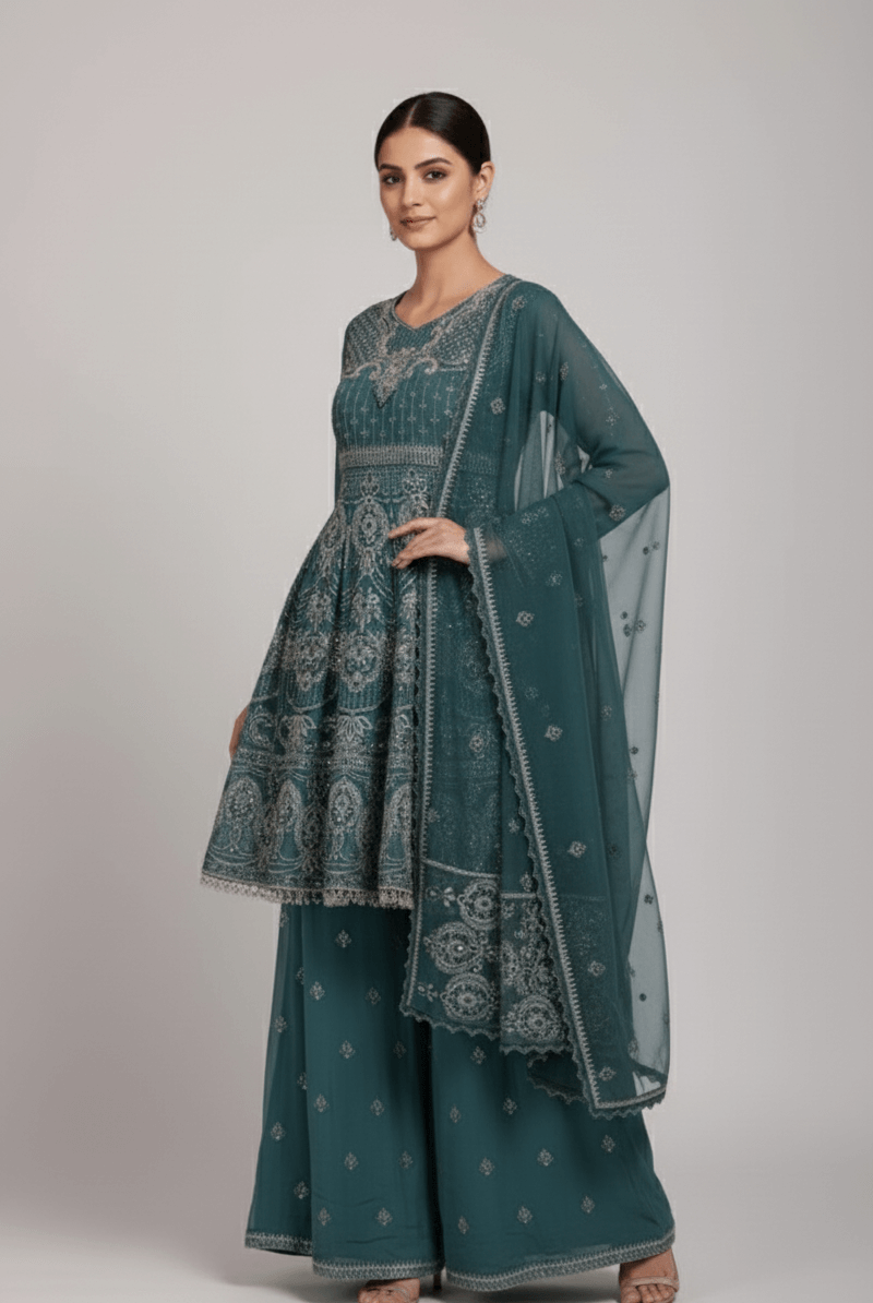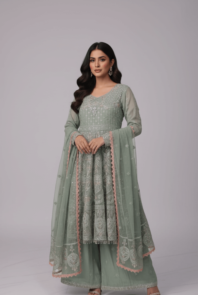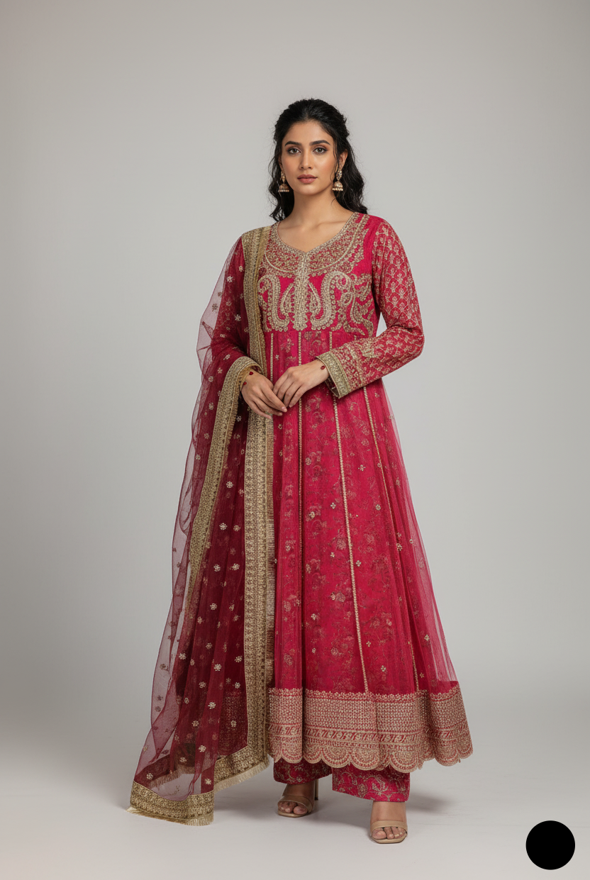 Crafted with high-quality fabrics, Party Wear All ensures comfort without compromising on style. From flowing frocks and designer suits to coordinated sets with matching dupattas or accessories, every piece in Party Wear All is thoughtfully designed for durability, elegance, and flair. Pair these outfits with matching jewelry, shoes, and handbags to create a complete look that exudes sophistication and charm.