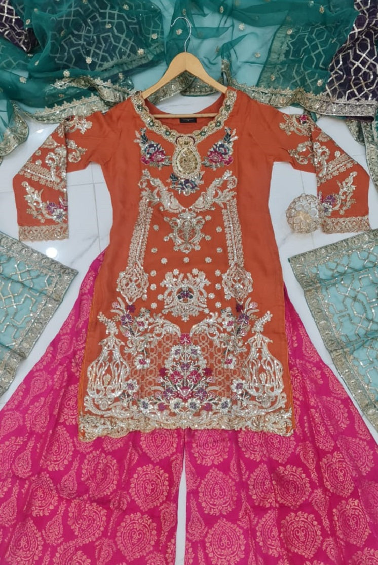 Crafted with high-quality fabrics, Party Wear All ensures comfort without compromising on style. From flowing frocks and designer suits to coordinated sets with matching dupattas or accessories, every piece in Party Wear All is thoughtfully designed for durability, elegance, and flair. Pair these outfits with matching jewelry, shoes, and handbags to create a complete look that exudes sophistication and charm.