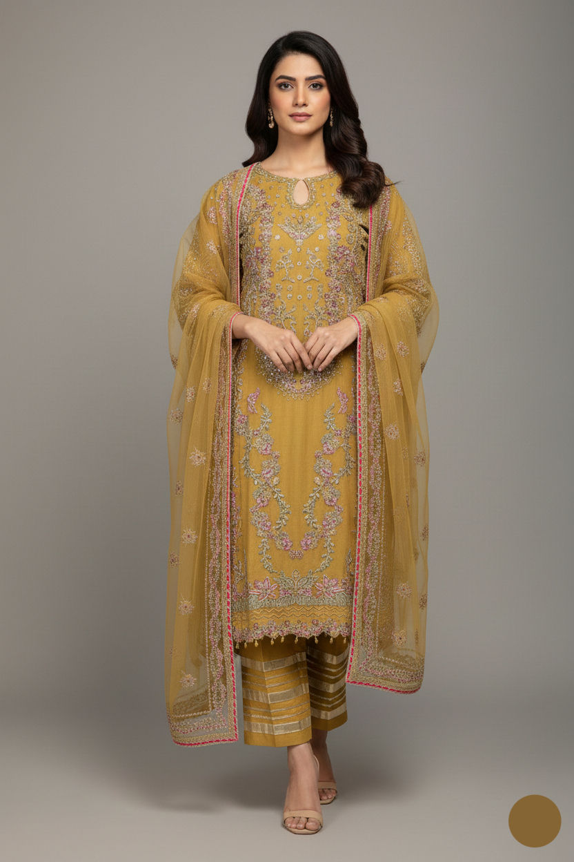 Crafted with high-quality fabrics, Party Wear All ensures comfort without compromising on style. From flowing frocks and designer suits to coordinated sets with matching dupattas or accessories, every piece in Party Wear All is thoughtfully designed for durability, elegance, and flair. Pair these outfits with matching jewelry, shoes, and handbags to create a complete look that exudes sophistication and charm.