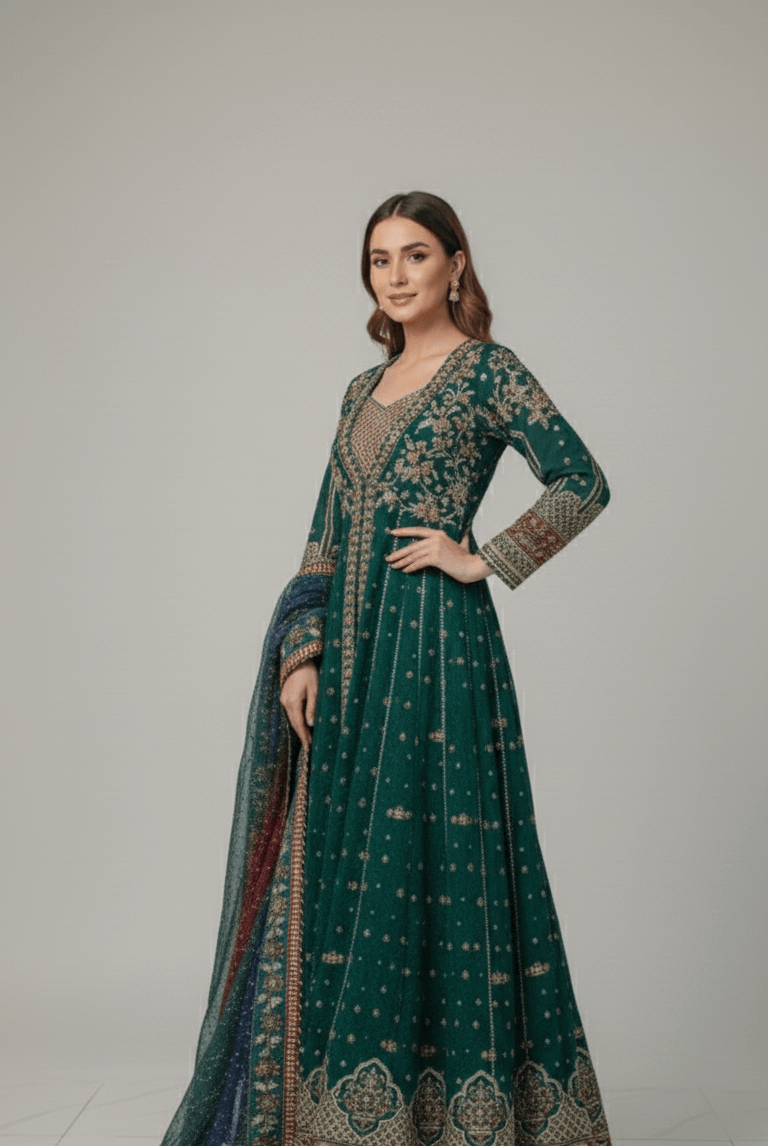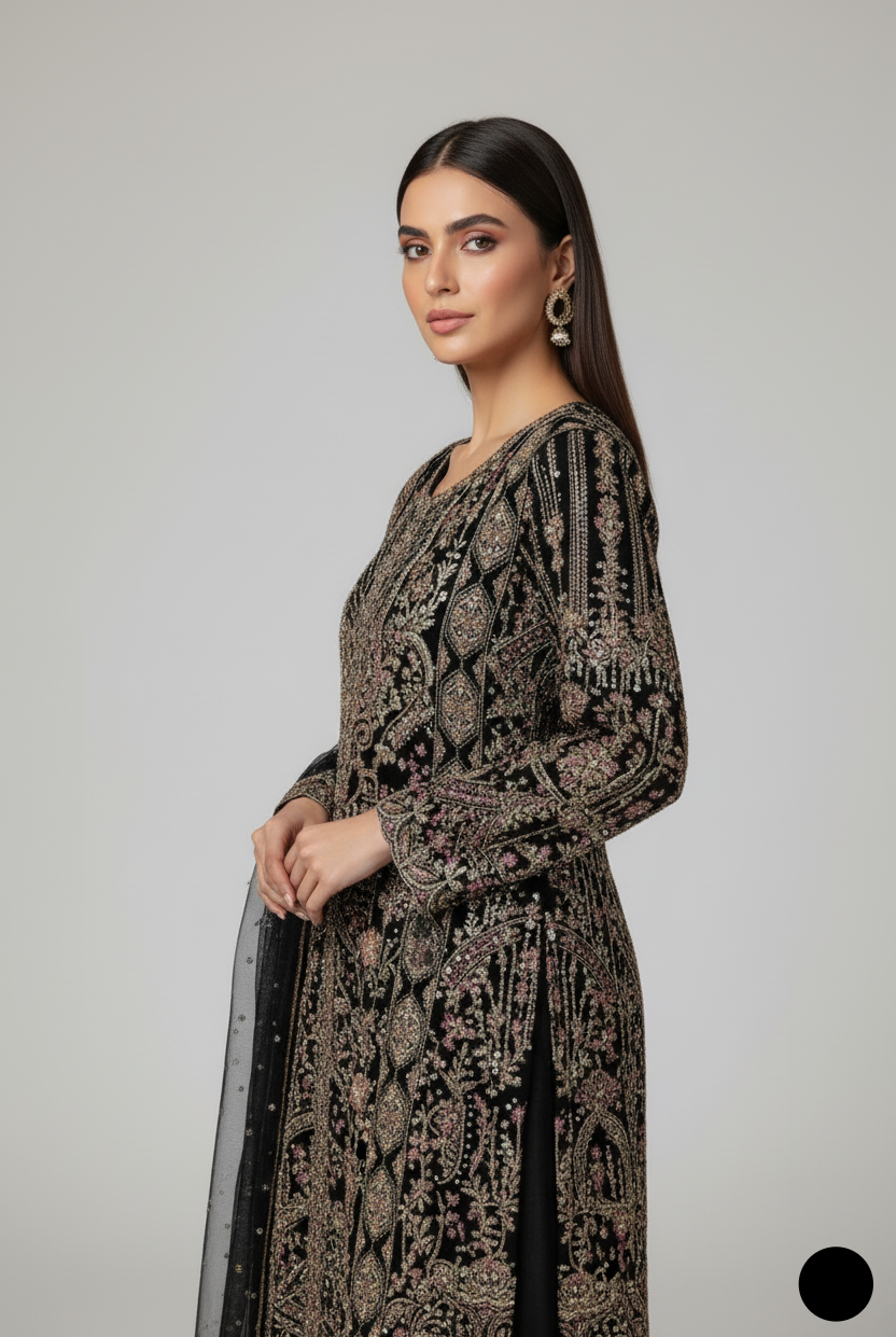 Crafted with high-quality fabrics, Party Wear All ensures comfort without compromising on style. From flowing frocks and designer suits to coordinated sets with matching dupattas or accessories, every piece in Party Wear All is thoughtfully designed for durability, elegance, and flair. Pair these outfits with matching jewelry, shoes, and handbags to create a complete look that exudes sophistication and charm.