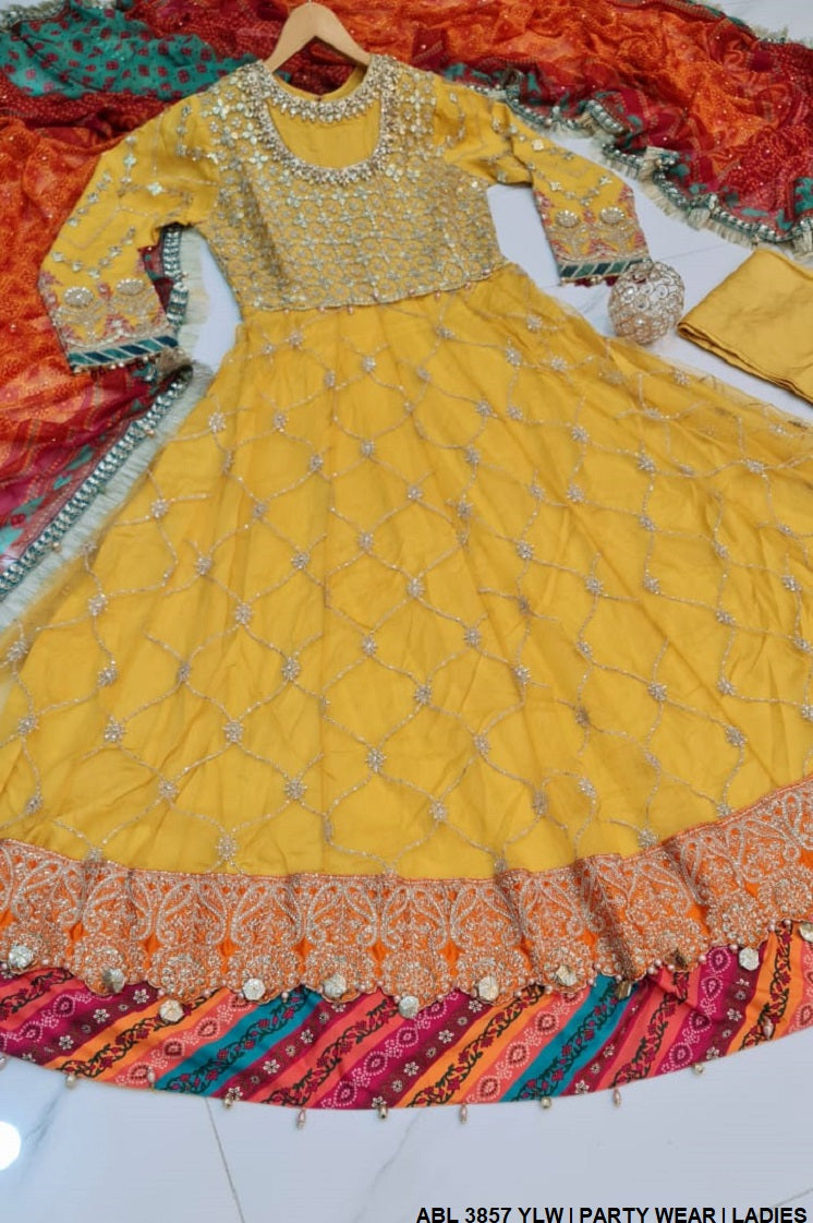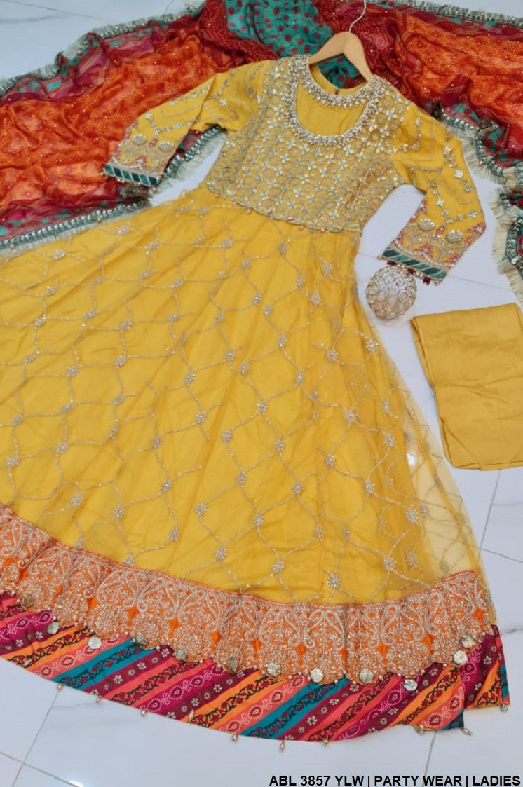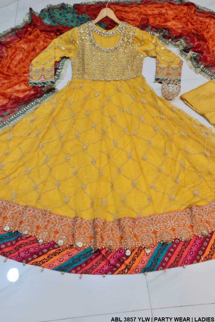 - This stunning ensemble features a long maxi-style shirt crafted from delicate net fabric, creating a graceful and flowing silhouette with a length ranging from 63 to 65 inches. Paired with soft and comfortable viscose trousers, the outfit ensures both elegance and ease of wear. The look is beautifully complemented by a chiffon dupatta, adding a touch of sophistication and charm. Weighing 1.450 kg, this lightweight yet luxurious attire is an ideal choice for formal and festive occasions.