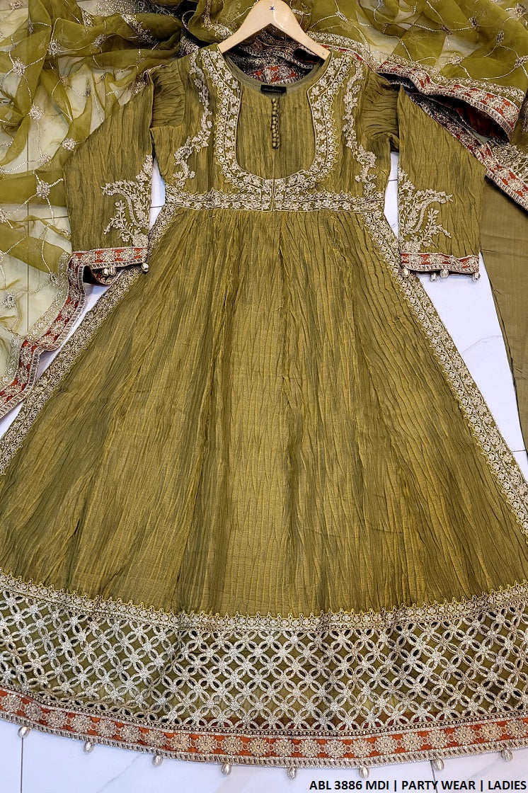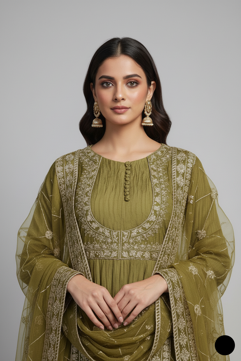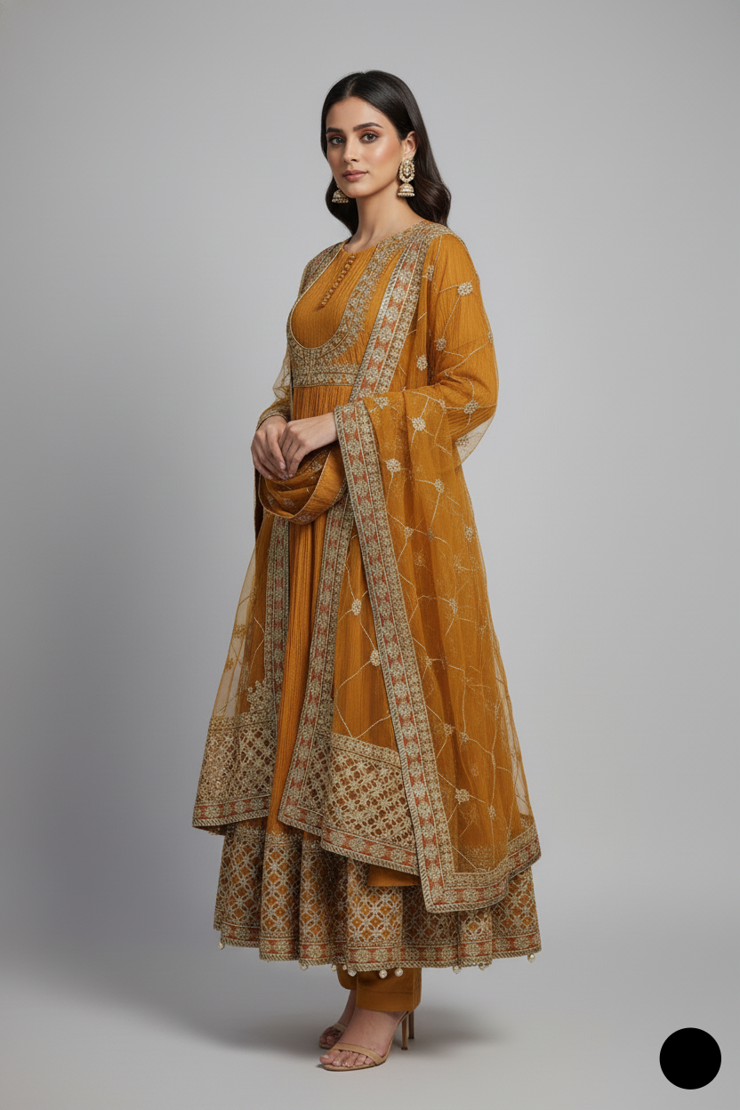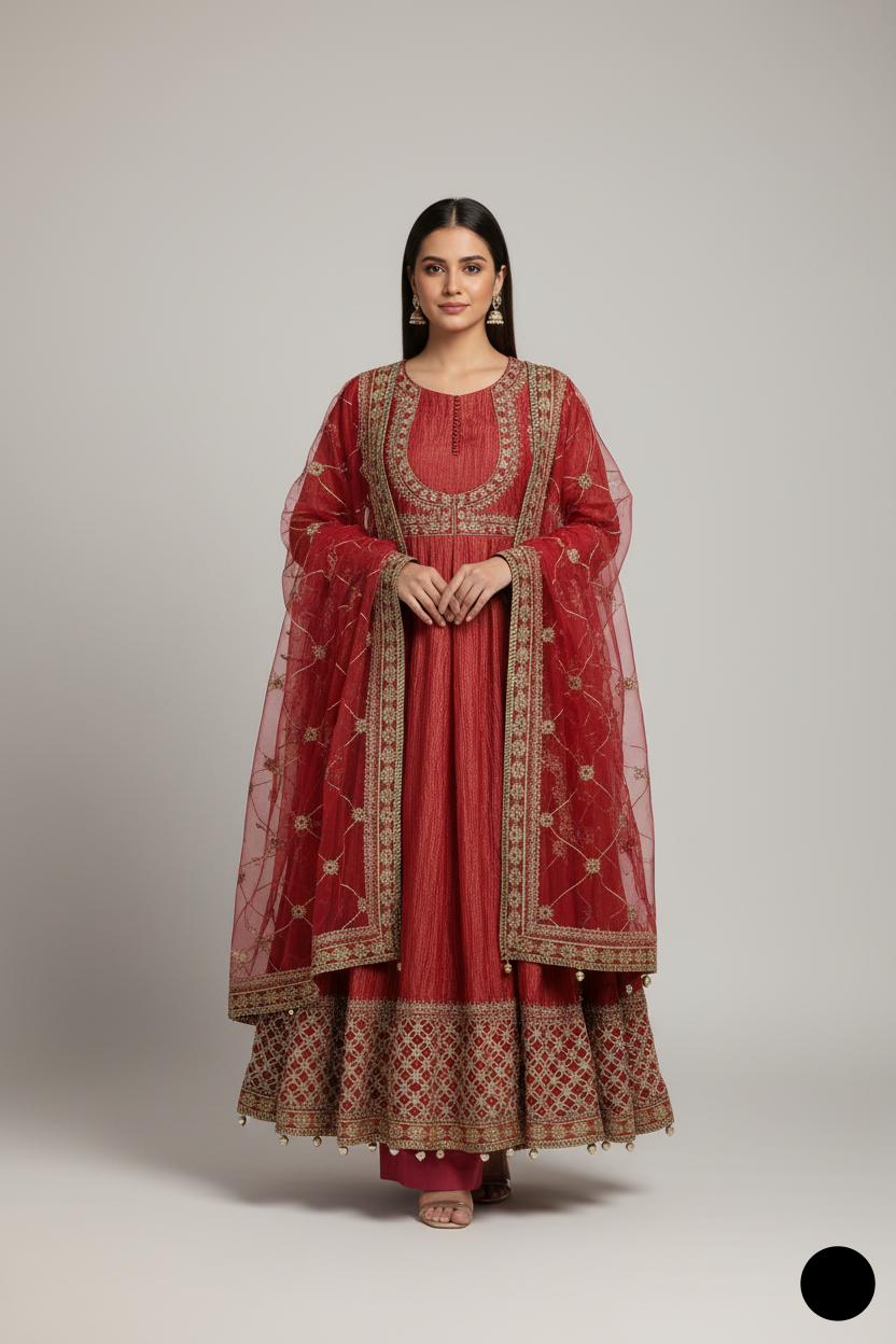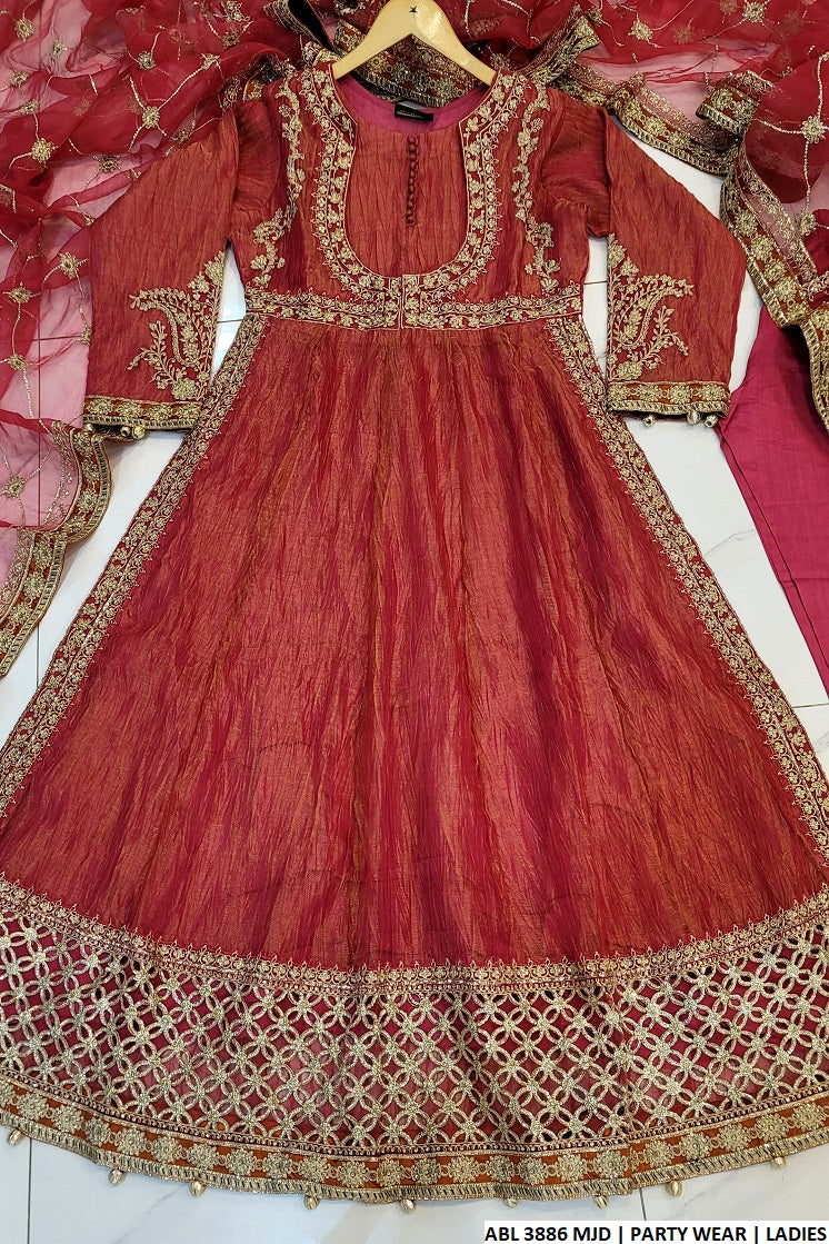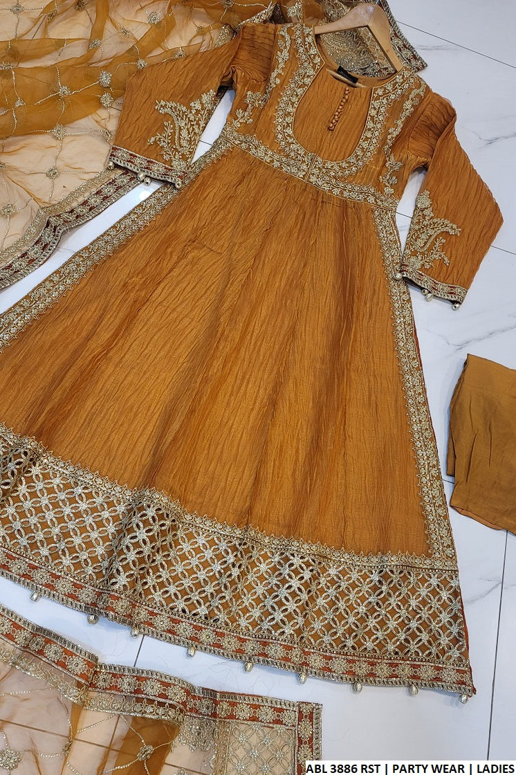1. This elegant ensemble features a Crush Masuri A-line shirt, designed for a graceful and flowing silhouette with a length ranging from 54 to 56 inches. Paired with viscose trousers, the outfit ensures both comfort and sophistication. The look is completed with a lightweight organza dupatta, adding a delicate and refined touch. Weighing 1.250 kg, this ensemble is perfect for formal and festive occasions, exuding timeless elegance and charm.