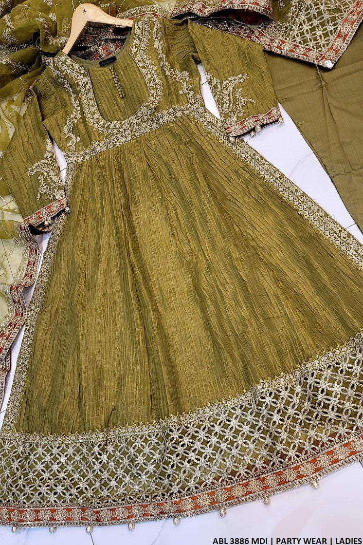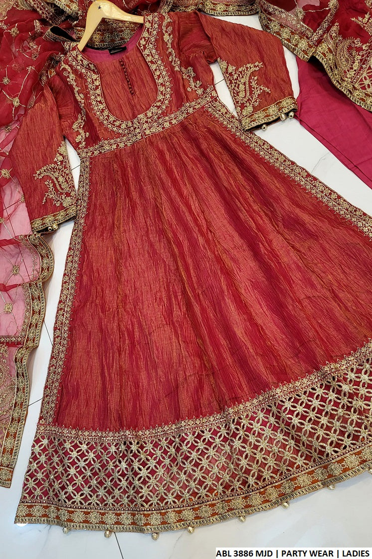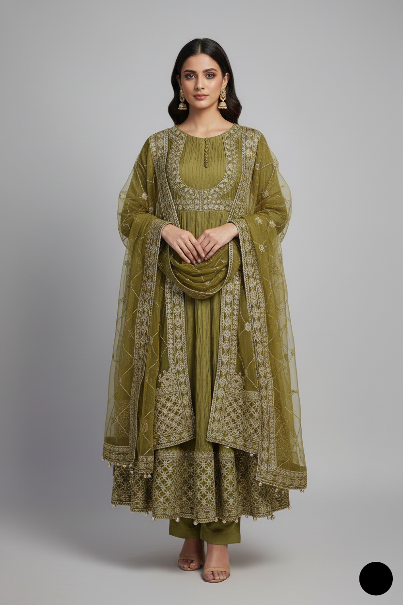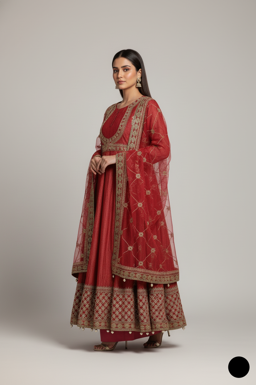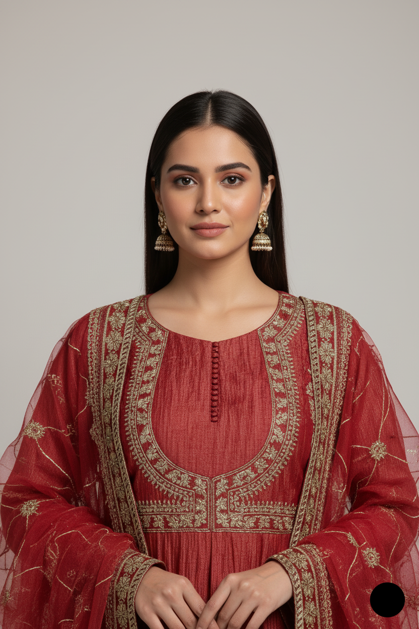 1. This elegant ensemble features a Crush Masuri A-line shirt, designed for a graceful and flowing silhouette with a length ranging from 54 to 56 inches. Paired with viscose trousers, the outfit ensures both comfort and sophistication. The look is completed with a lightweight organza dupatta, adding a delicate and refined touch. Weighing 1.250 kg, this ensemble is perfect for formal and festive occasions, exuding timeless elegance and charm.