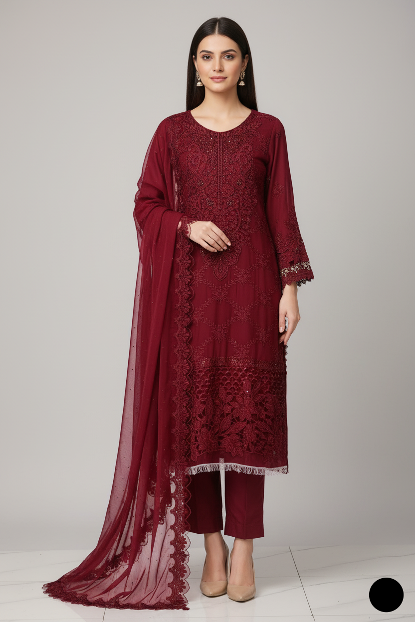 This elegant A-line shirt is beautifully tailored from soft chiffon fabric, offering a stylish yet comfortable fit. Paired with grip fabric trousers, the ensemble strikes the perfect balance between ease and sophistication. A matching chiffon dupatta adds a soft, airy touch to complete the look. With a shirt length of 48 to 50 inches, this outfit provides a flattering silhouette suitable for a variety of occasions. Weighing just 0.950 kg, it’s a lightweight choice ideal for casual outings and semi-formal gatherings, ensuring you stay effortlessly fashionable and comfortable.