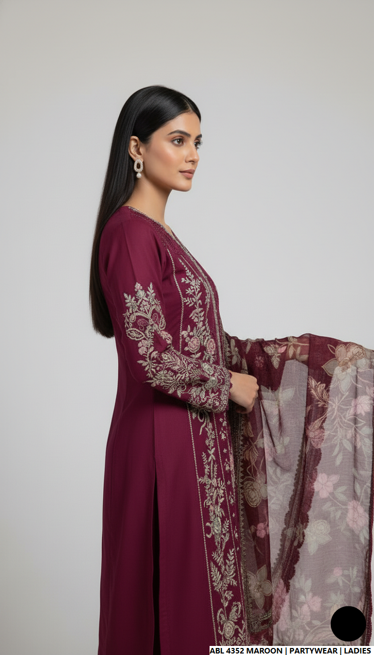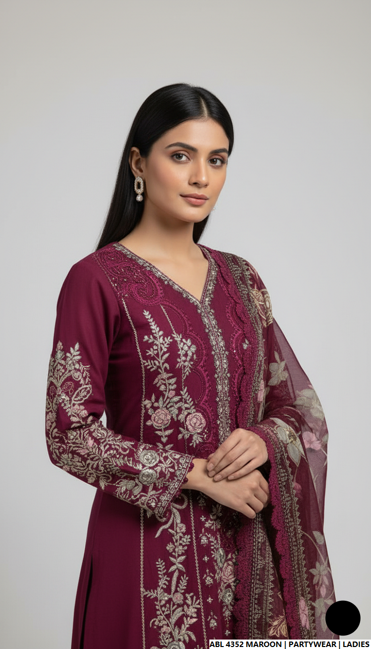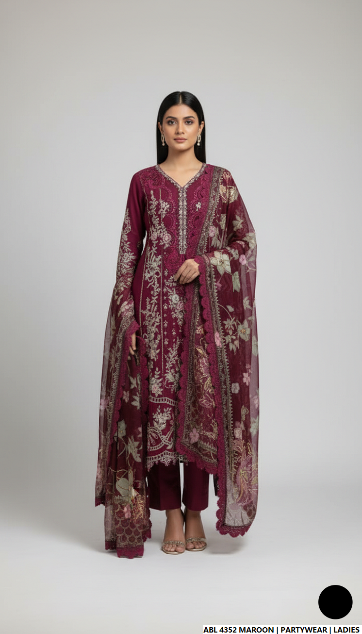 This elegant 3-piece ensemble is crafted for style and comfort. It features a Chiffon straight shirt paired with Grip plazo trousers, creating a graceful silhouette that’s ideal for both formal and semi-formal occasions. The outfit is elevated with a beautifully Digital Printed dupatta, adding a vibrant touch to the overall look. With a shirt length of 46 to 48 inches and a total weight of 1.050 kg, this outfit ensures lightweight elegance and ease of wear.