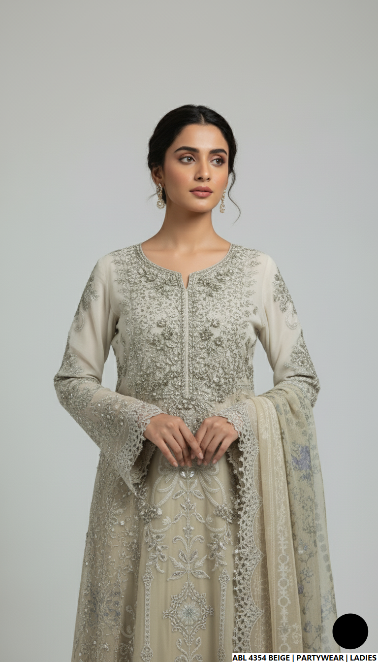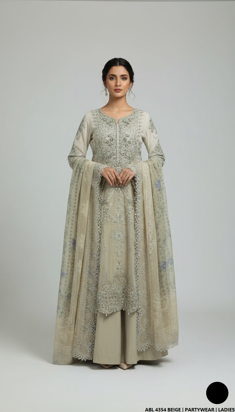 This graceful 3-piece ensemble is crafted for elegance and comfort. It features a Chiffon straight shirt with a flattering shirt length of 46 to 48 inches, paired with Grip fabric plazo trousers that offer both style and ease. A matching Chiffon dupatta completes the look, adding a touch of sophistication to your outfit. Weighing 1.300 kg, this outfit is perfect for formal gatherings, festive events, or stylish everyday wear.