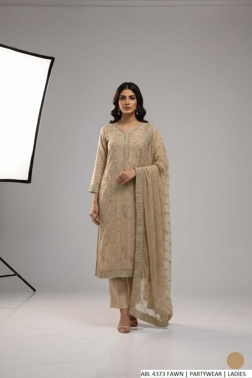 This sophisticated outfit is crafted with a luxurious silk shirt paired with silk trousers, delivering an elegant and premium look. The ensemble is complemented by a soft chiffon dupatta that adds a graceful finishing touch. Designed in a classic straight shirt style, the shirt length ranges from 45 to 47 inches, making it ideal for formal and festive occasions. With an overall weight of approximately 1.150 kg, the outfit offers a rich feel while maintaining comfort.