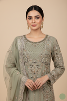 - This sophisticated ensemble features a straight shirt crafted from chiffon, offering a lightweight and graceful drape. With a length of 41 to 43 inches, the shirt provides a refined and elegant look. It is paired with trousers made from grip fabric, ensuring a structured yet comfortable fit. Completing the outfit is a delicate organza dupatta, adding a touch of luxury and charm. Weighing approximately 1.250 kg, this ensemble is designed to combine style and comfort, making it a perfect choice for any occasion