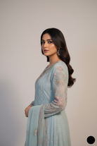 - The outfit features a long frock made from chiffon fabric, paired with trousers crafted from grip fabric, and a dupatta also made from chiffon fabric. The frock has a length of 46/48, providing a graceful and elegant fit. The total weight of the outfit is 1.000 kg, making it lightweight and comfortable to wear. The combination of soft, flowing chiffon and the structured grip fabric creates a harmonious blend of sophistication and contemporary style, perfect for a chic and timeless look.