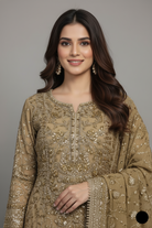 This elegant ensemble features a beautifully designed shirt with gharara, crafted entirely from premium chiffon fabric. The shirt, trouser, and dupatta are all made of lightweight chiffon, offering a graceful and breathable fit perfect for formal and semi-formal occasions. The shirt length ranges between 39 to 41 inches, providing a modest yet stylish silhouette. With a total outfit weight of 1.550 kg, this outfit strikes a balance between luxury and comfort.