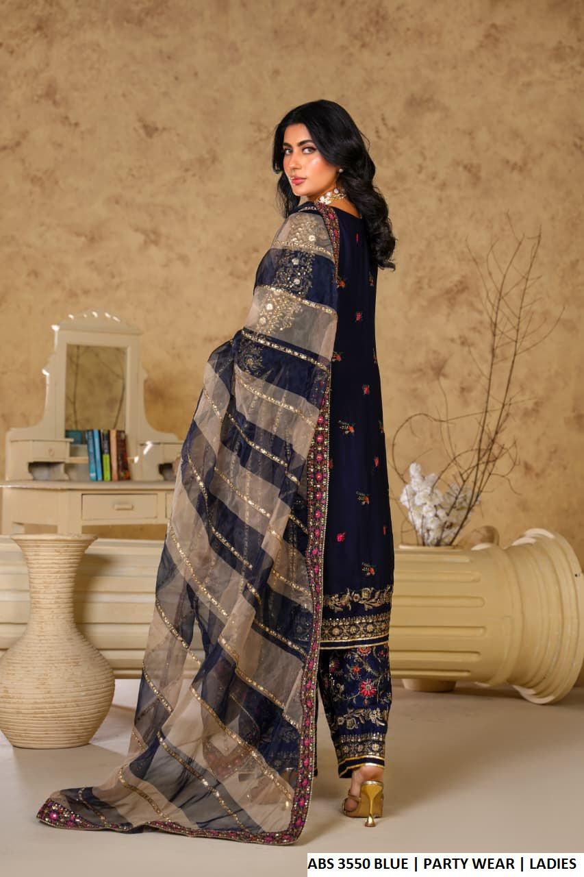 This beautifully crafted outfit features a Straight Shirt style made from luxurious Chiffon fabric, paired with comfortable and soft Viscose trousers. The look is completed with an elegant Organza Dupatta, adding a touch of sophistication to the ensemble. With a shirt length of 42 to 44 inches and a total weight of 1.050 KG, this 3-piece set is ideal for formal events, festive occasions, or classy evening wear.
