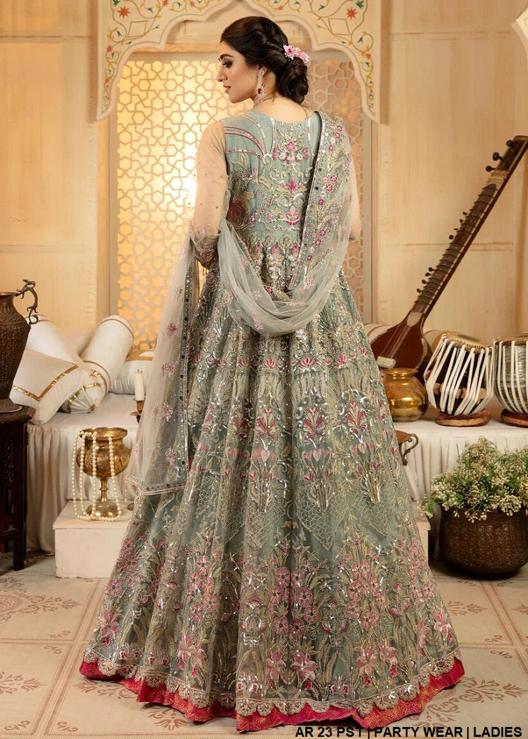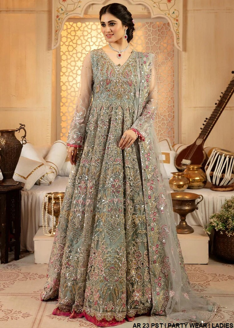 - This stunning outfit is crafted with premium net fabric for the shirt and dupatta, paired with grip fabric for the trousers, ensuring both elegance and comfort. Designed in a long maxi style, it offers a regal and graceful appearance, perfect for special occasions. The shirt length ranges from 59 to 61 inches, adding a flowing and sophisticated touch to the ensemble. Weighing approximately 3.4 kg, this attire exudes timeless charm and grandeur, making it an excellent choice for making a memorable statement.