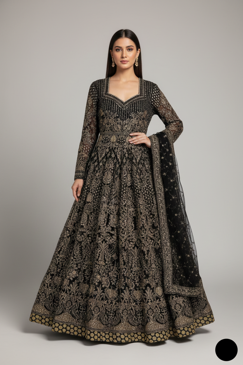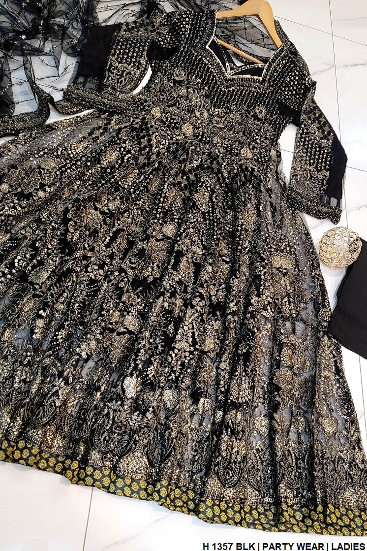 - This elegant long frock is crafted from delicate net fabric, offering a sophisticated and airy look. The shirt features a length of 54/56 inches, creating a flowing and graceful silhouette. The trousers are made from viscose, providing a smooth and comfortable fit. Paired with a matching net dupatta, this outfit exudes charm and class. With a total weight of 1.250 kg, it is perfect for special occasions where both style and comfort are key, combining the beauty of net fabric with the comfort of viscose for a stunning ensemble.