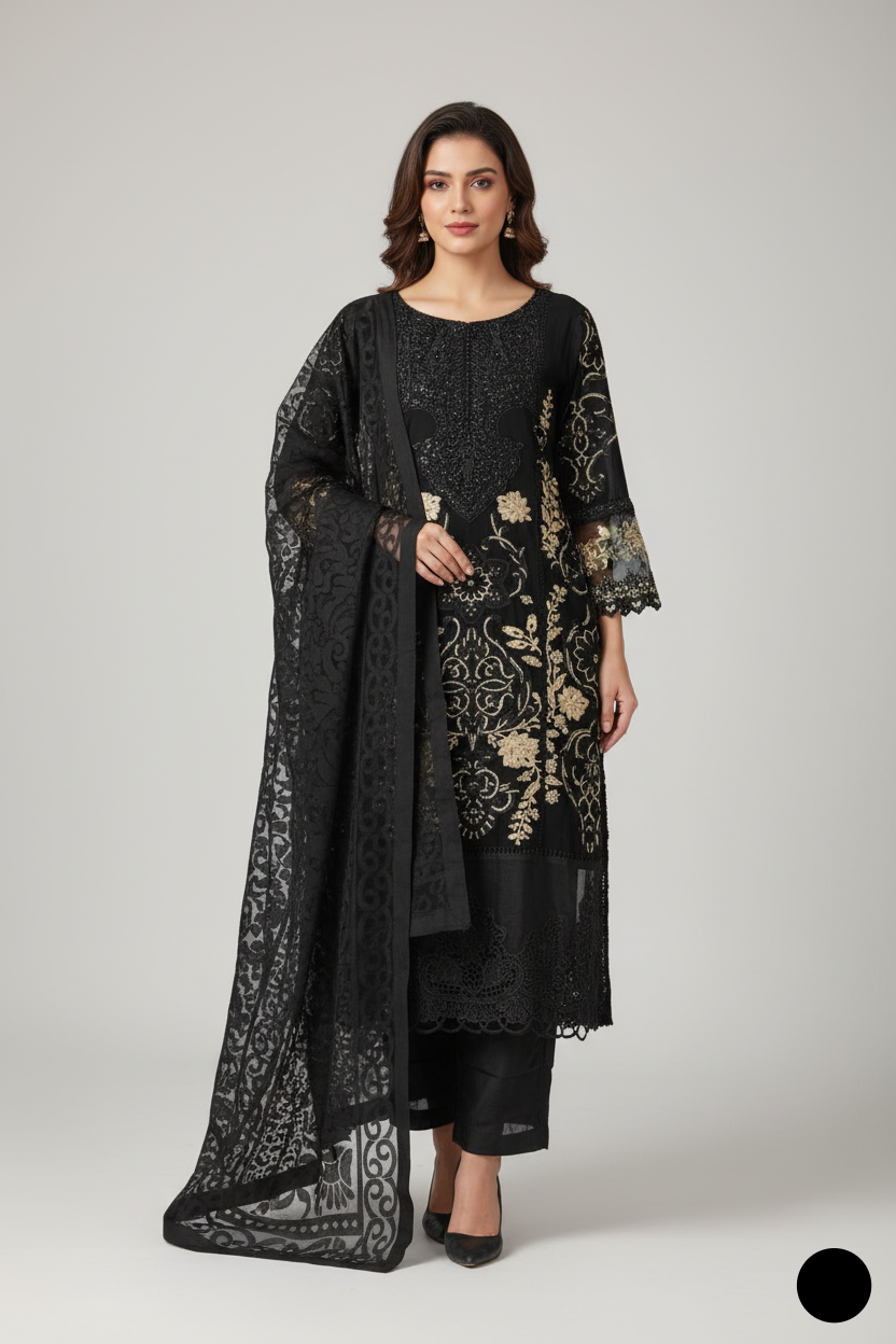 This beautifully crafted ensemble features a chiffon straight shirt paired with a stylish plazo, offering a blend of grace and modern flair. The shirt, with a flattering length of 48 to 50 inches, flows elegantly, while the grip fabric plazo ensures both comfort and a contemporary silhouette. Completing the look is a soft organza dupatta that adds a touch of sophistication and charm. Weighing just 0.800 kg, this outfit is lightweight and ideal for festive or formal occasions.