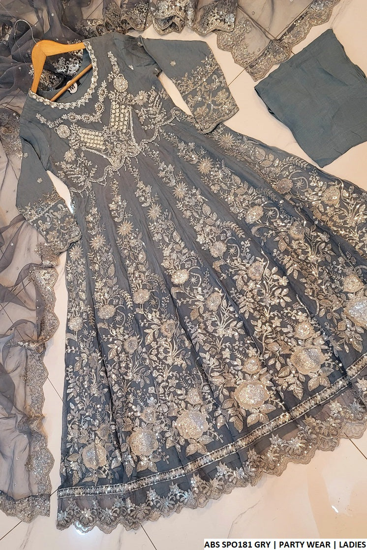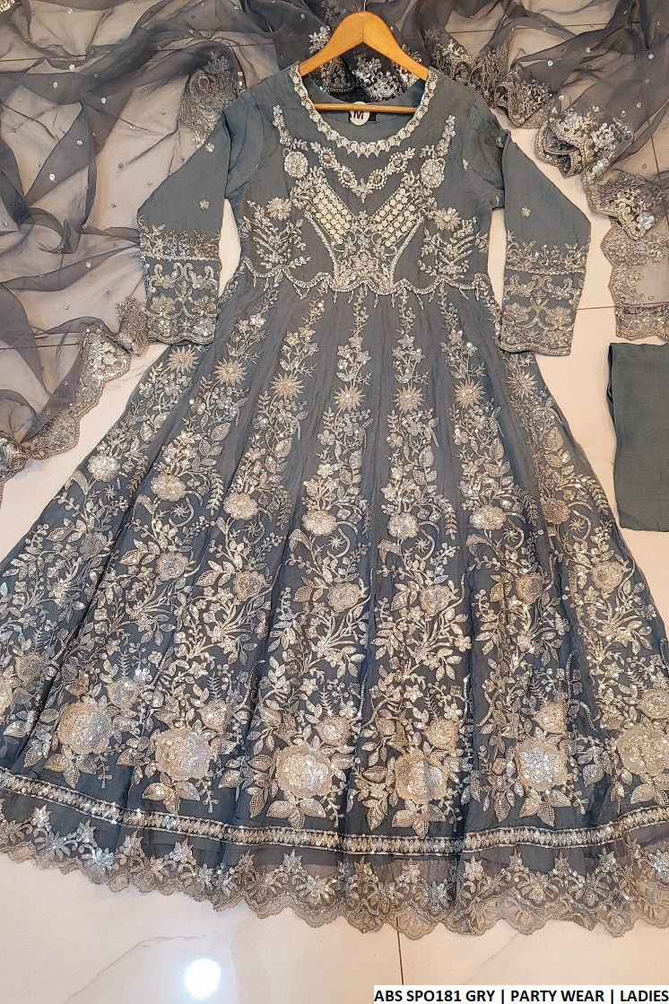 - This beautiful ensemble features a chiffon shirt, paired with grip fabric trousers and a matching organza dupatta. The style is a long frock with a shirt length of 56/58 cm, offering an elegant and graceful silhouette. With a total weight of 1.350 kg, it strikes the perfect balance between comfort and sophistication.