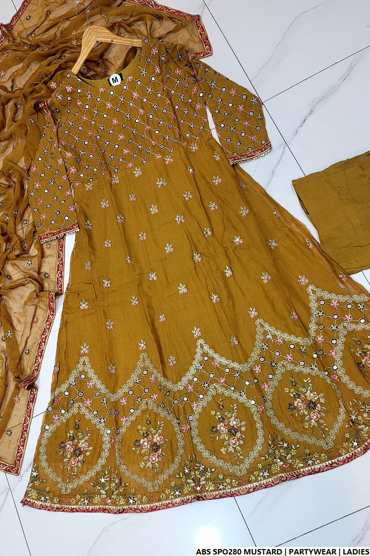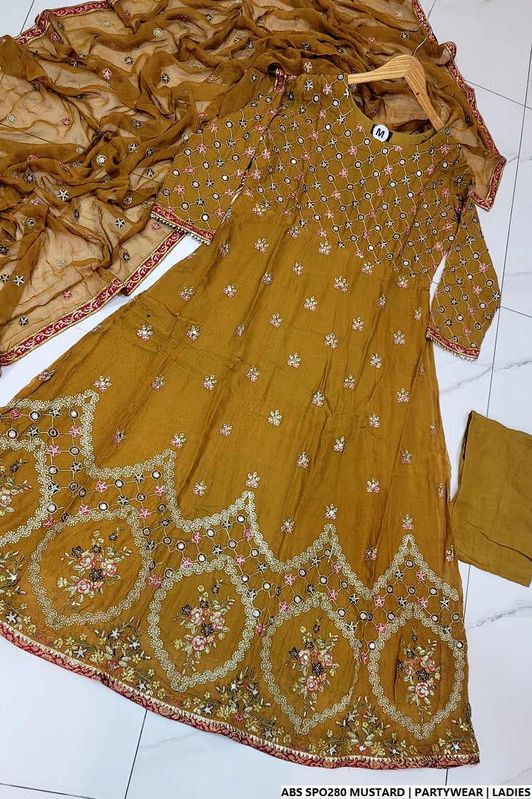 This graceful long frock ensemble is crafted from soft, flowing chiffon for the shirt and dupatta, offering a delicate and elegant drape. Paired with comfortable grip trousers, the outfit ensures both style and ease. With a shirt length ranging from 53 to 55 inches and a total weight of 1.150 KG, this 3-piece set is ideal for formal occasions or festive gatherings, giving you a refined look with lightweight comfort.