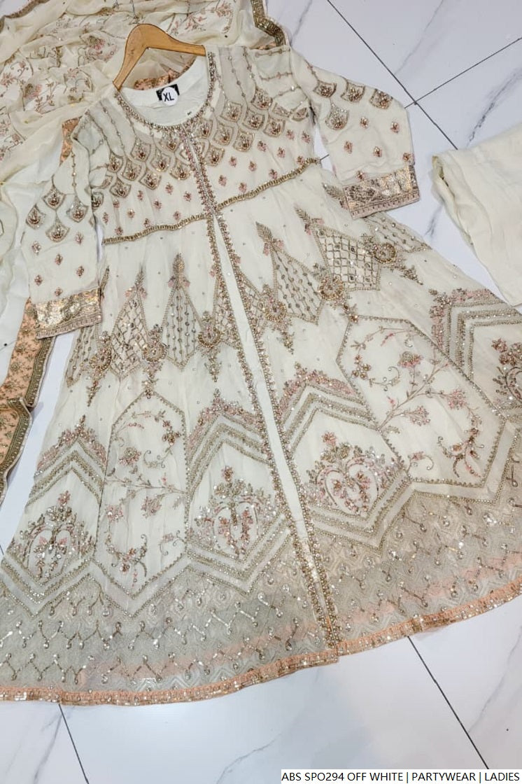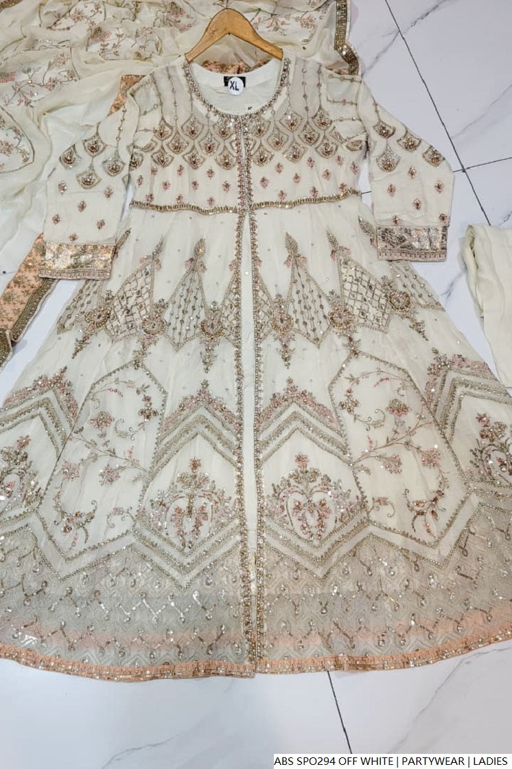 Make a graceful impression with this exquisite chiffon open long frock, designed to offer flow, elegance, and timeless charm. Paired with a sleek and comfortable grip trouser, this ensemble is both flattering and stylish. The look is completed with a matching chiffon dupatta, adding an airy and elegant finish. With a shirt length of 51/53 inches and a total weight of 1.400 kg, this outfit is perfect for weddings, festive events, and formal gatherings where sophistication is key.