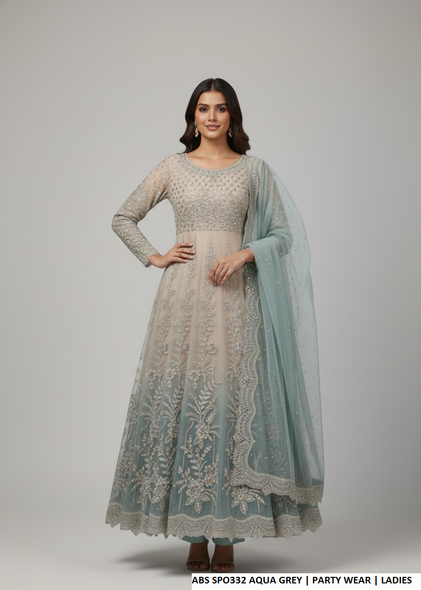 This luxurious outfit features a soft net shirt paired with a sturdy grip trouser and a graceful organza dupatta. Designed in a long maxi style, it creates an elegant and flowing silhouette. With a shirt length ranging from 54 to 56 inches, the ensemble offers a sophisticated and modest look. Weighing approximately 1.500 kg, it delivers a premium feel, making it ideal for formal and festive occasions.