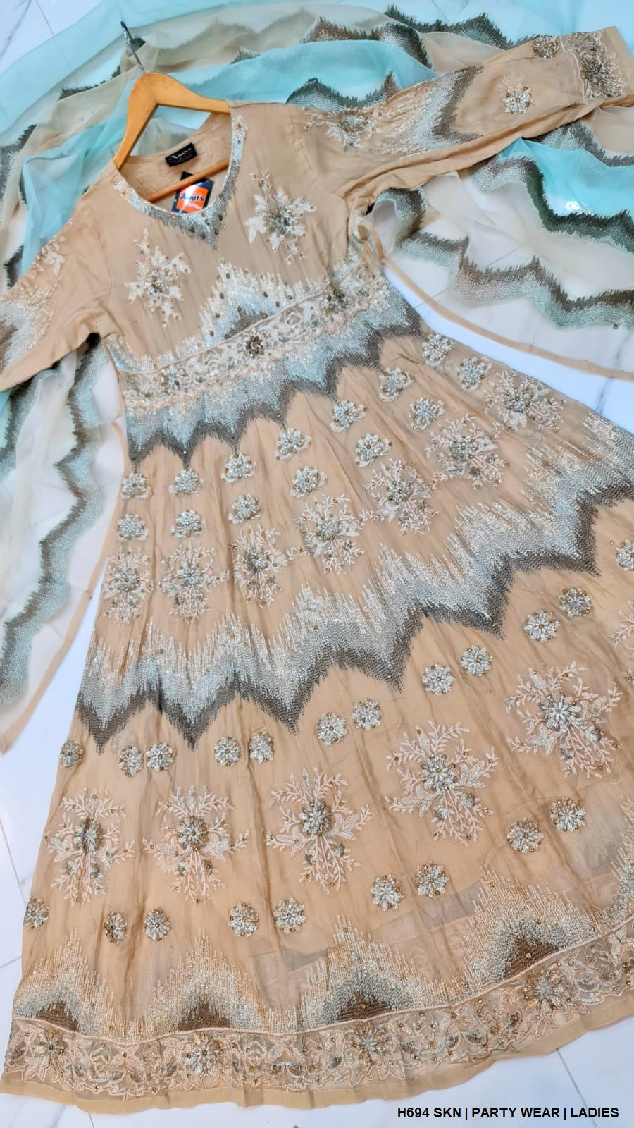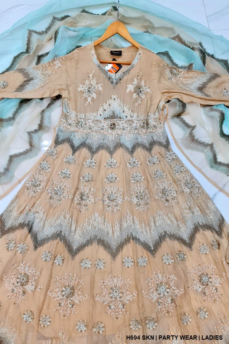 - This elegant long maxi is crafted from luxurious chiffon fabric, offering a smooth and graceful flow. With a shirt length ranging from 56 to 58 inches, it creates a dramatic and flattering silhouette. The outfit is paired with grip fabric trousers, adding structure, while the organza dupatta enhances the overall sophistication of the ensemble. Weighing 1.250 kg, this maxi is perfect for formal occasions or special events, combining both style and comfort for a truly refined look.