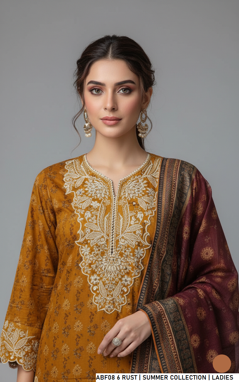 This elegant outfit is crafted from premium lawn fabric, offering a lightweight and breathable feel for all-day comfort. The straight-style shirt is paired with matching lawn trousers for a clean and refined look, while the digitally printed dupatta adds a stylish and vibrant touch. With a shirt length of 41 to 43 inches and a total weight of 0.450 kg, this ensemble is perfect for casual wear and seasonal styling.