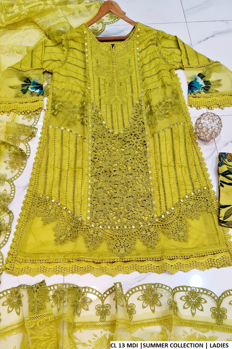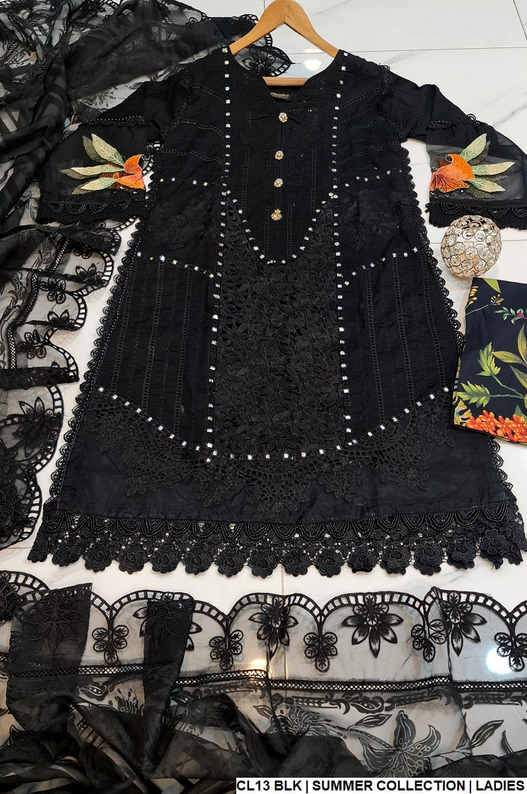 1. This stylish A-line shirt set is crafted from soft and breathable cotton fabric, ensuring comfort throughout the day. The trousers, also made from cotton, complement the shirt perfectly, offering a cohesive and comfortable fit. The dupatta is made from delicate organza, adding a touch of elegance and sophistication to the ensemble. With a shirt length of 44/46 inches, it provides a flattering, graceful silhouette. The set weighs 0.950 kg, making it a lightweight yet luxurious option for a chic and comfortable look.