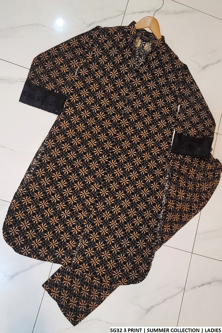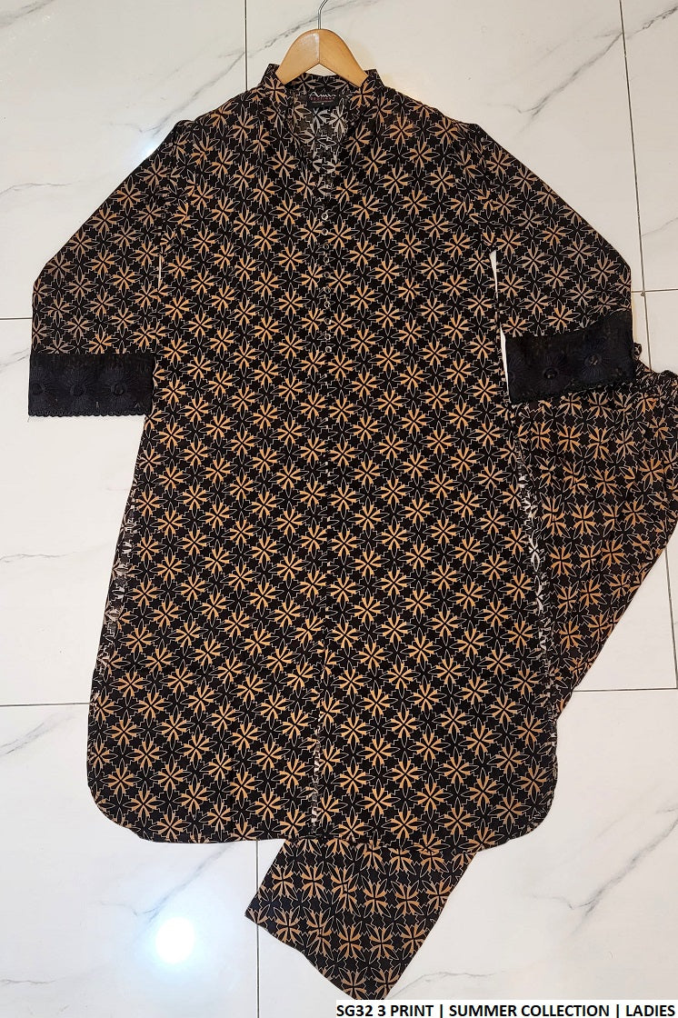 This elegant 3-piece suit is crafted from premium Arabic Linen fabric, combining breathable comfort with timeless style. The Gol Daman shirt design offers a graceful and traditional silhouette, ideal for a refined everyday or semi-formal look. The outfit includes a pair of matching Arabic Linen trousers and a two-piece dupatta, completing the ensemble with effortless sophistication. With a shirt length of 42 to 44 inches and a lightweight feel of just 0.350 kg, this set is perfect for warmer seasons and all-day wear.