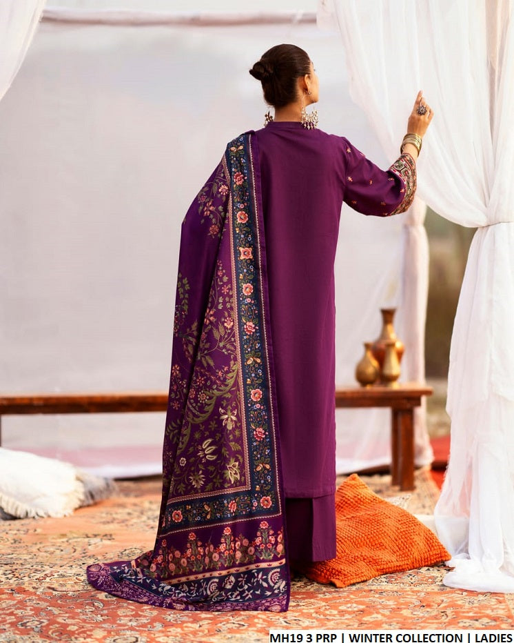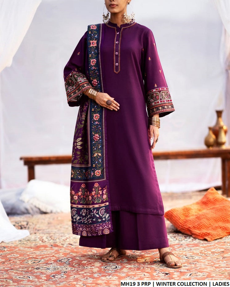 1. This stylish outfit features a straight shirt with plazo, made from premium Sulb Khaddar fabric, known for its comfort and durability. The matching trousers are also crafted from the same high-quality Sulb Khaddar fabric, providing a consistent and sophisticated look. The dupatta is adorned with a beautiful digital print, enhancing the overall appeal of the ensemble. With a shirt length of 44/46 inches, the outfit ensures a flattering fit, while the weight of 0.750 kg makes it both light and easy to wear. This combination is perfect for both casual and semi-formal occasions.