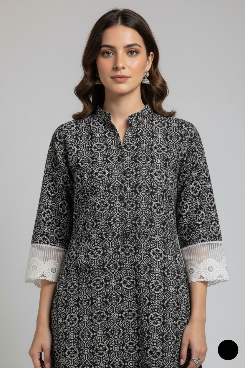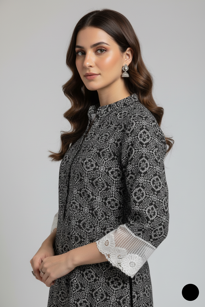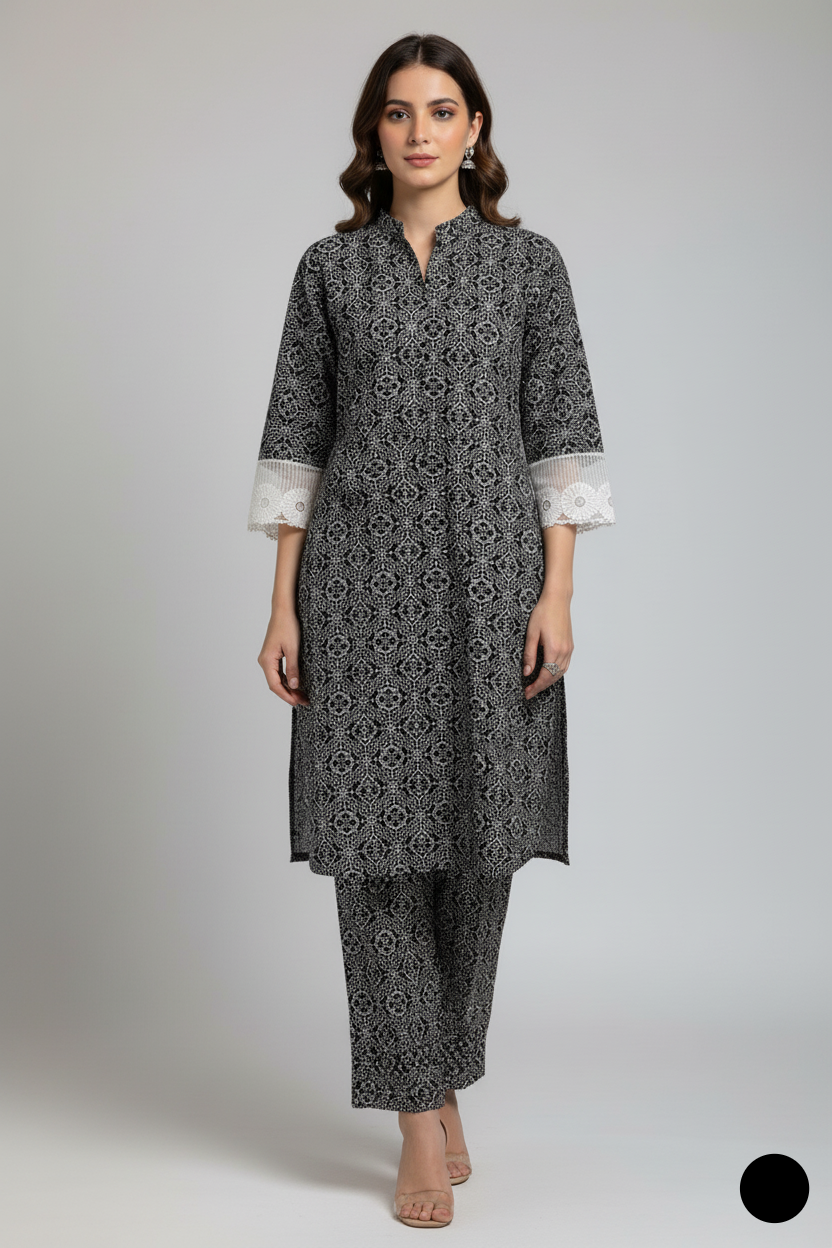 This graceful 2-piece outfit is crafted from soft and breathable cotton fabric, making it perfect for warmer days or year-round comfort. The design features a goal daman shirt with a stylish flare and a shirt length ranging from 42 to 44 inches, offering a modest and flowing silhouette. Paired with matching cotton trousers, this suit delivers both elegance and ease of wear. With a total weight of just 0.500 kg, it’s a lightweight and practical choice for casual gatherings, daily wear, or office attire.
