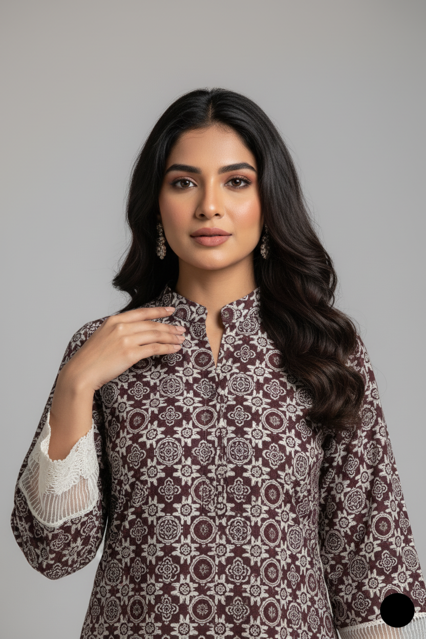 This graceful 2-piece outfit is crafted from soft and breathable cotton fabric, making it perfect for warmer days or year-round comfort. The design features a goal daman shirt with a stylish flare and a shirt length ranging from 42 to 44 inches, offering a modest and flowing silhouette. Paired with matching cotton trousers, this suit delivers both elegance and ease of wear. With a total weight of just 0.500 kg, it’s a lightweight and practical choice for casual gatherings, daily wear, or office attire.