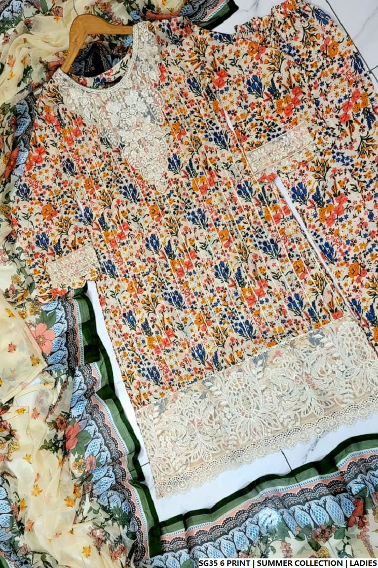 This elegant ensemble features a straight shirt crafted from soft, breathable lawn fabric, paired with a matching lawn trouser for all-day comfort. The outfit is completed with a beautifully printed digital chiffon dupatta, adding a touch of sophistication to the overall look. With a shirt length of 43 to 45 inches and a total weight of 0.550 kg, this outfit is perfect for casual to semi-formal occasions, combining both style and comfort effortlessly.