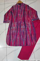 This beautifully crafted ensemble features a Goal Daman style shirt made from soft and breathable lawn fabric, offering both comfort and sophistication. The shirt length ranges from 42 to 44 inches, ideal for a flattering fit. Paired with a matching lawn trouser and a stylish two-piece dupatta, this outfit is perfect for day-to-day wear or semi-formal occasions. With a lightweight feel of just 0.350 kg, it's designed to keep you comfortable while looking effortlessly chic.