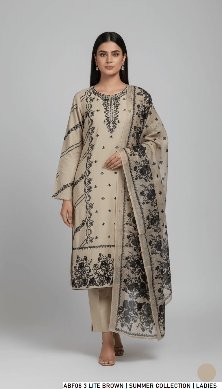 This stylish outfit is made from high-quality lawn fabric, offering a soft, breathable, and lightweight feel for all-day comfort. The straight-style shirt is paired with matching lawn trousers for a clean and elegant look, while the digitally printed dupatta adds a modern and vibrant touch. With a shirt length ranging from 40 to 43 inches and a total weight of 0.500 kg, this ensemble is ideal for both casual wear and semi-formal occasions.