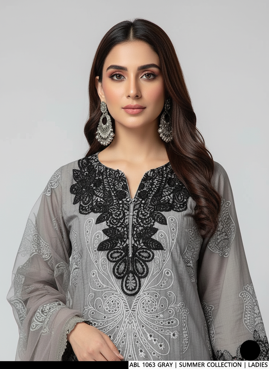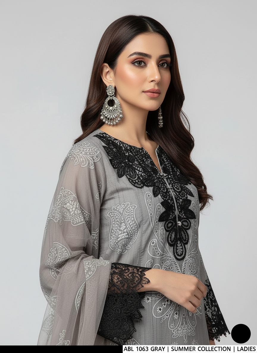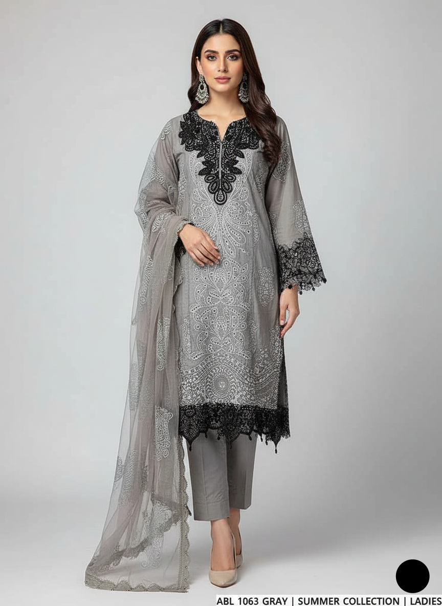This sophisticated 3-piece outfit features a classic A-line shirt crafted from breathable cotton, ensuring all-day comfort and elegance. Paired with matching cotton trousers and a delicate net dupatta, the ensemble blends simplicity with subtle charm. With a shirt length of 46 to 48 inches and a total weight of 0.950 kg, this look is perfect for casual wear, festive occasions, or summer outings.