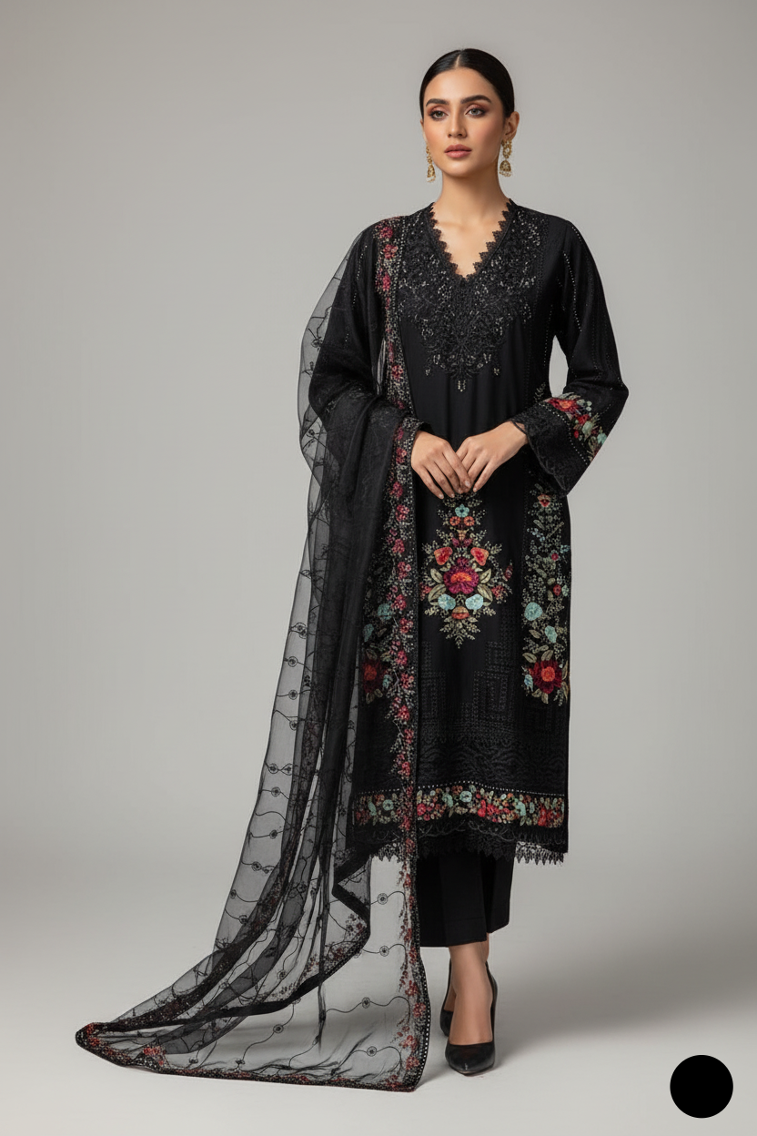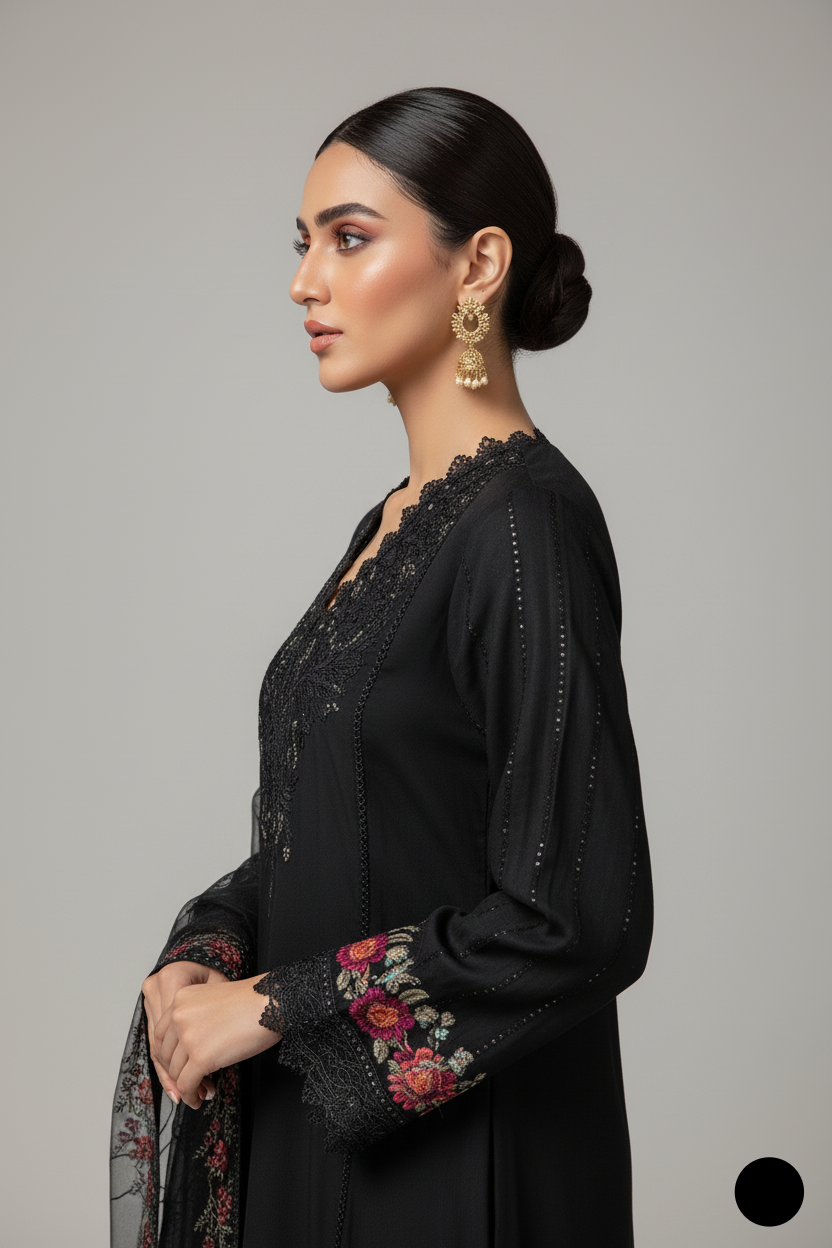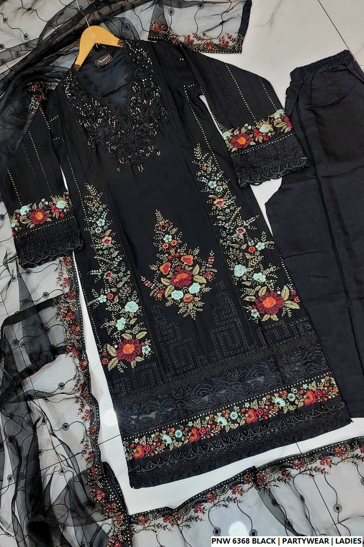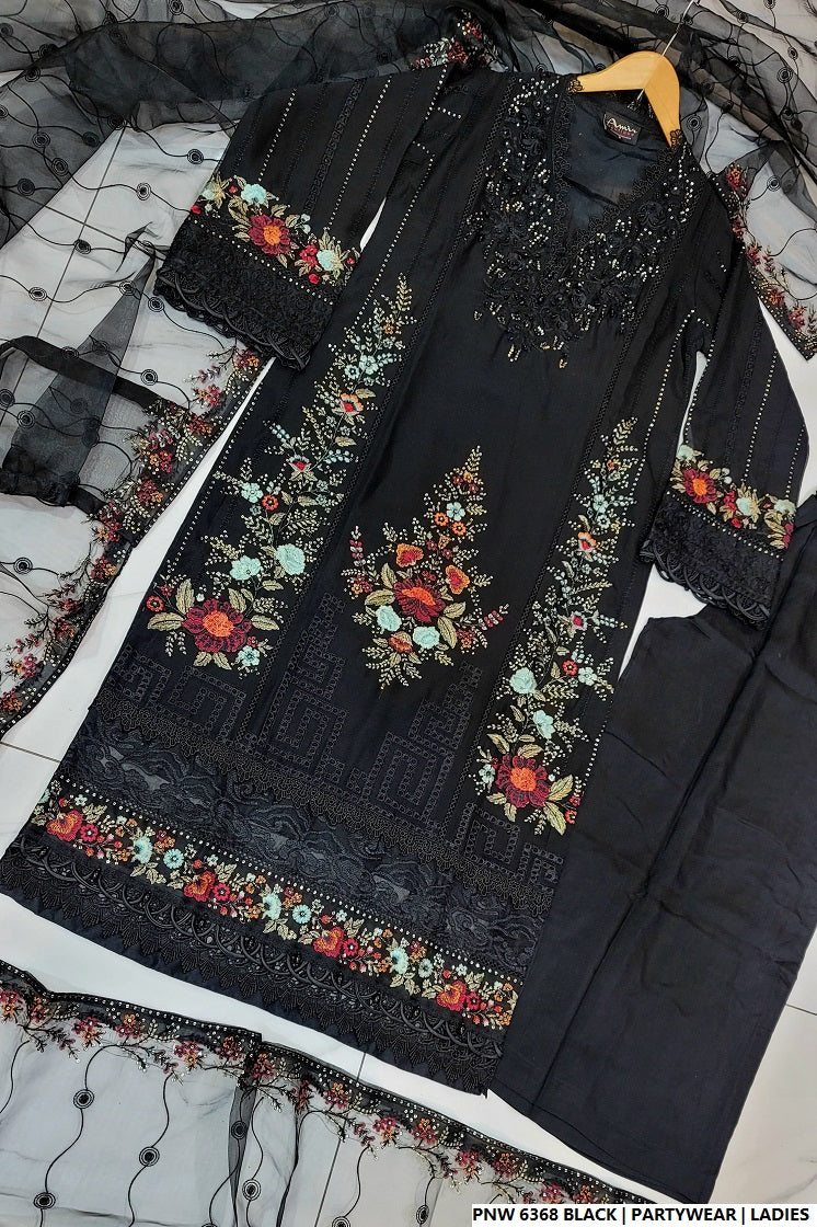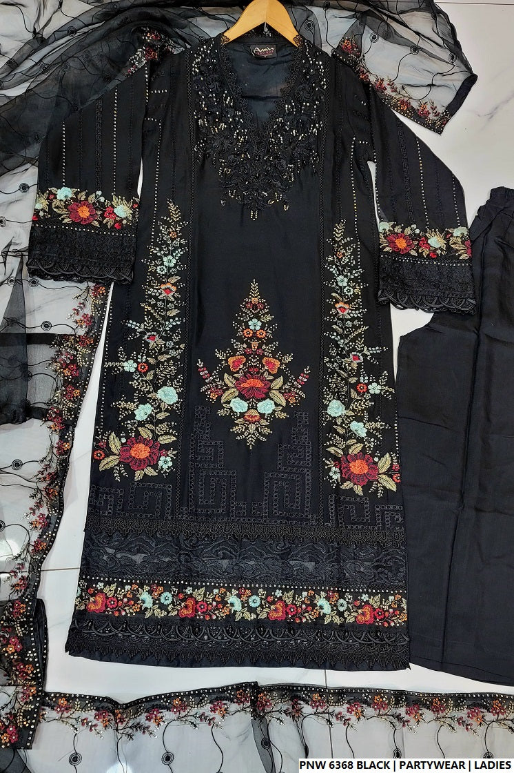 This elegant ensemble features a straight chiffon shirt paired with viscose plazo trousers and a delicate organza dupatta, offering a perfect blend of style and comfort. The shirt comes in a graceful length of 46 to 48 inches, making it suitable for formal and semi-formal occasions. Weighing just 0.650 kg, the outfit ensures both comfort and a flowing silhouette.