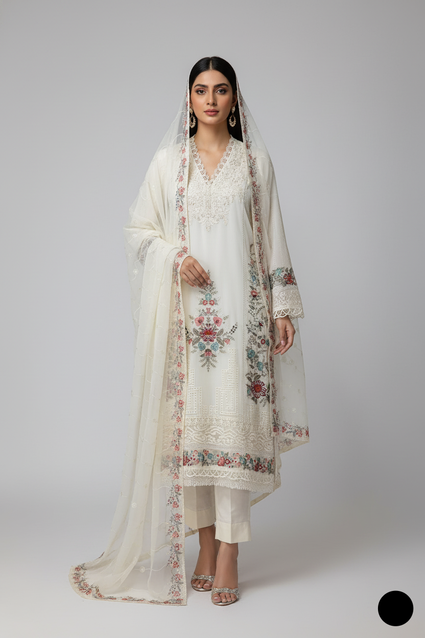 This elegant ensemble features a straight chiffon shirt paired with viscose plazo trousers and a delicate organza dupatta, offering a perfect blend of style and comfort. The shirt comes in a graceful length of 46 to 48 inches, making it suitable for formal and semi-formal occasions. Weighing just 0.650 kg, the outfit ensures both comfort and a flowing silhouette.