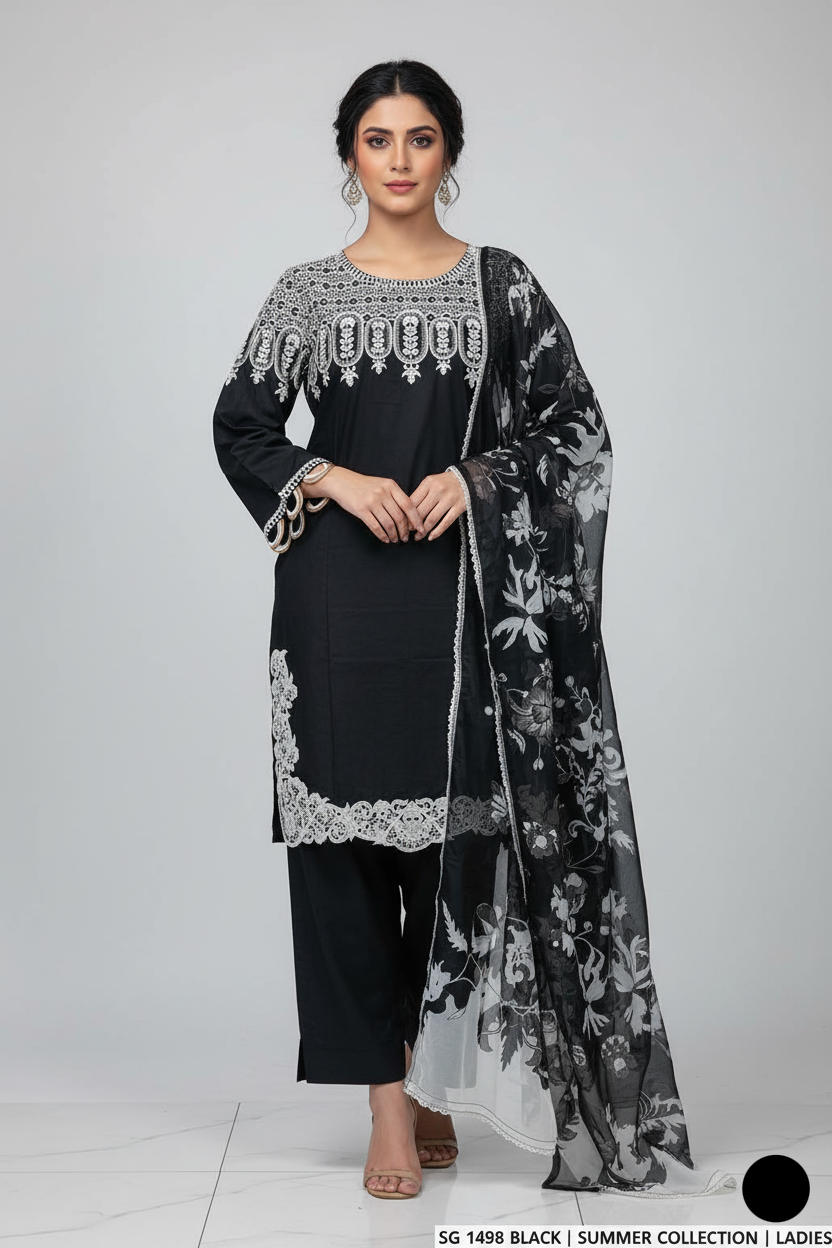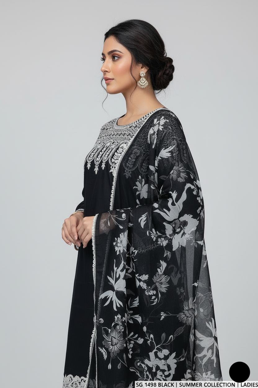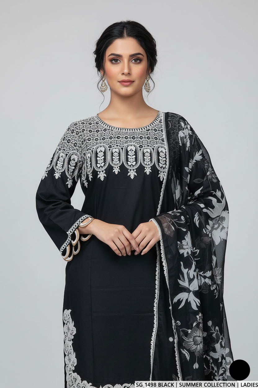 This beautiful outfit features a traditional short shirt paired with a farshi shalwar, both tailored from breathable cotton fabric for comfort in warmer climates. The look is completed with a vibrant digital printed dupatta that adds a modern touch. With a shirt length of 32 to 34 inches and a total weight of 0.500 KG, it’s ideal for everyday wear or casual gatherings, offering a perfect blend of heritage and style.