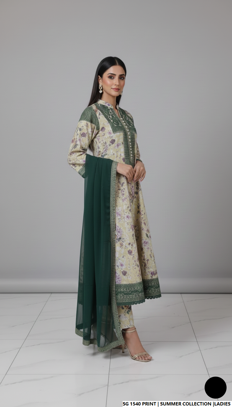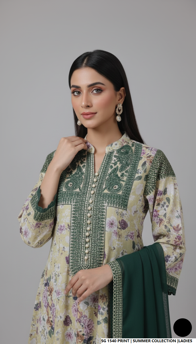 This beautiful outfit features a premium Lawn shirt paired with a comfortable Lawn trouser and a lightweight Chiffon dupatta. Designed in an elegant Long Frock style, the shirt length ranges between 47 to 49 inches, offering a graceful and stylish fall. With a total weight of 0.650 kg, this ensemble is perfect for anyone looking for comfort, sophistication, and timeless fashion.