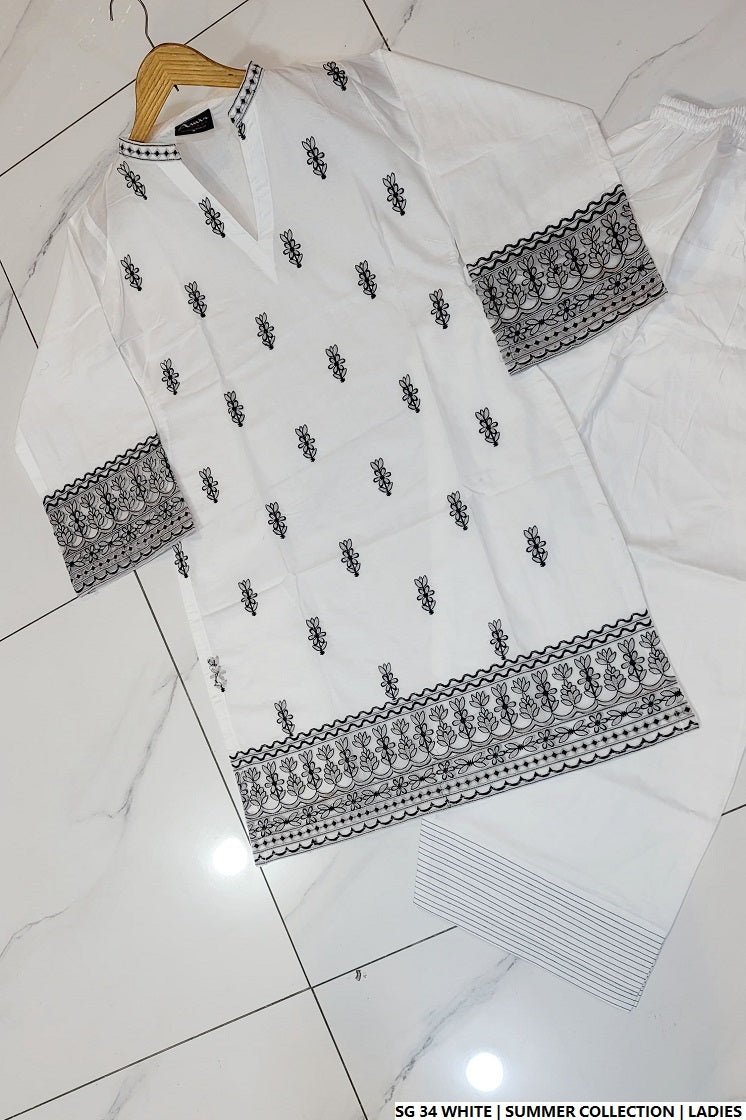 This elegant outfit features a straight shirt with a traditional farshi shalwar, crafted from high-quality cotton fabric for both the shirt and trousers. The ensemble is complemented with a stylish two-piece , making it perfect for everyday wear or semi-formal occasions. The shirt length ranges between 36 to 38 inches, offering a graceful and flattering silhouette. The total weight of the outfit is approximately 0.450 kg, making it light and comfortable for all-day wear.
