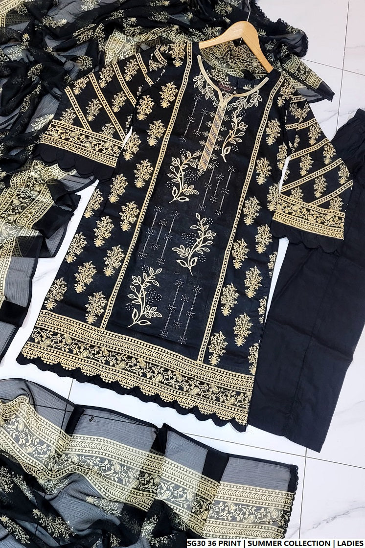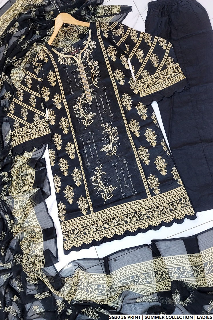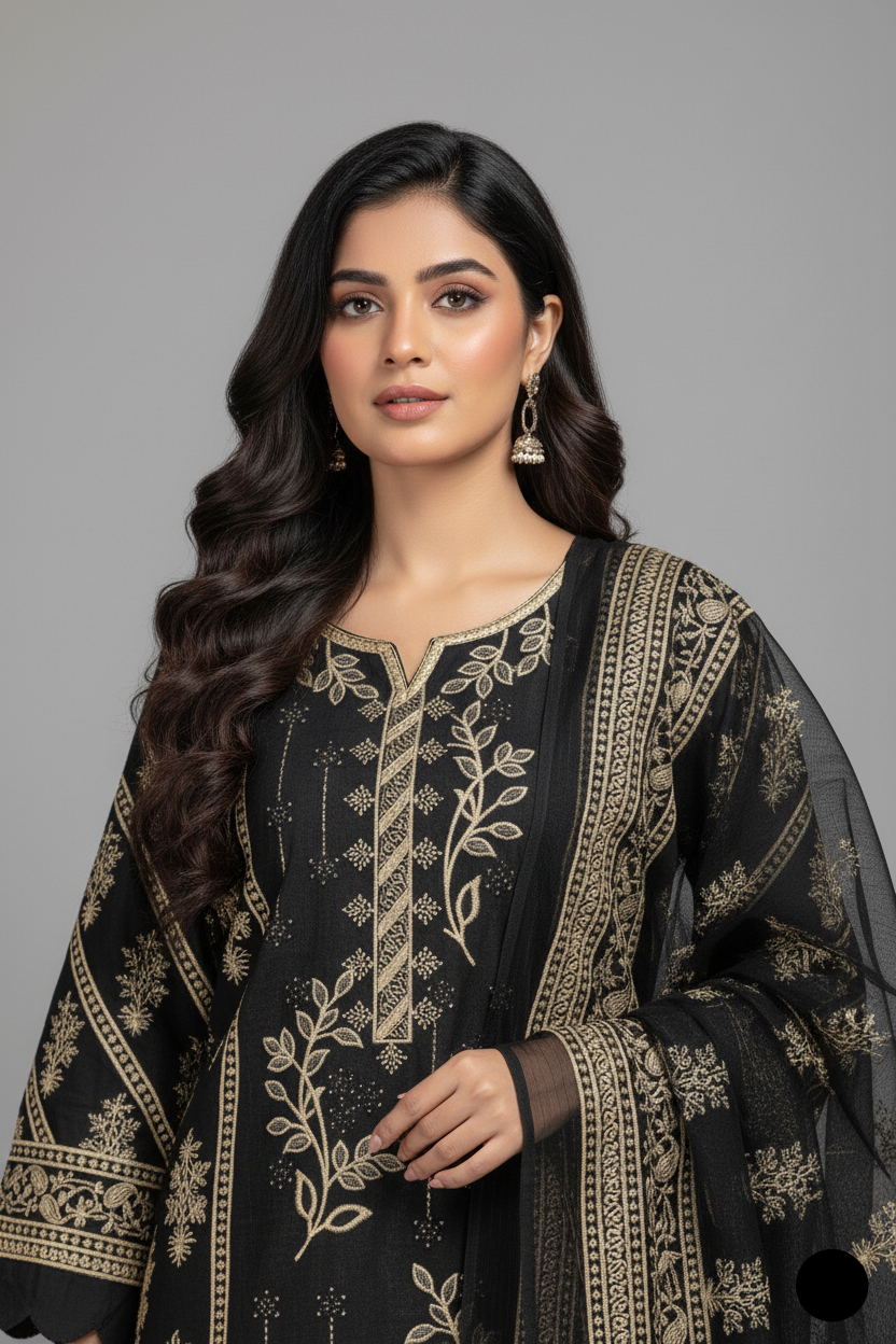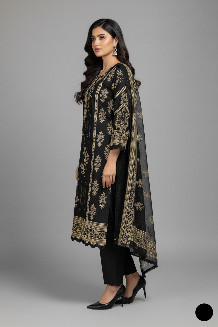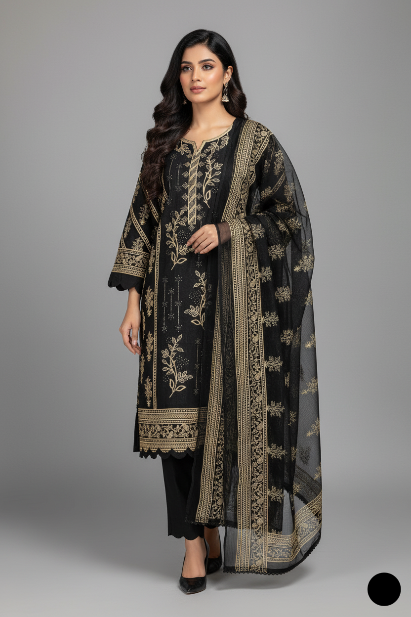 This beautiful three-piece outfit features a straight shirt made from high-quality lawn fabric, paired with a matching lawn trouser for a cohesive and breathable ensemble. The outfit is completed with a digitally printed chiffon dupatta that adds an elegant touch. With a shirt length ranging between 40 to 42 inches and an overall weight of 0.450 kg, this ensemble strikes the perfect balance between comfort and style.