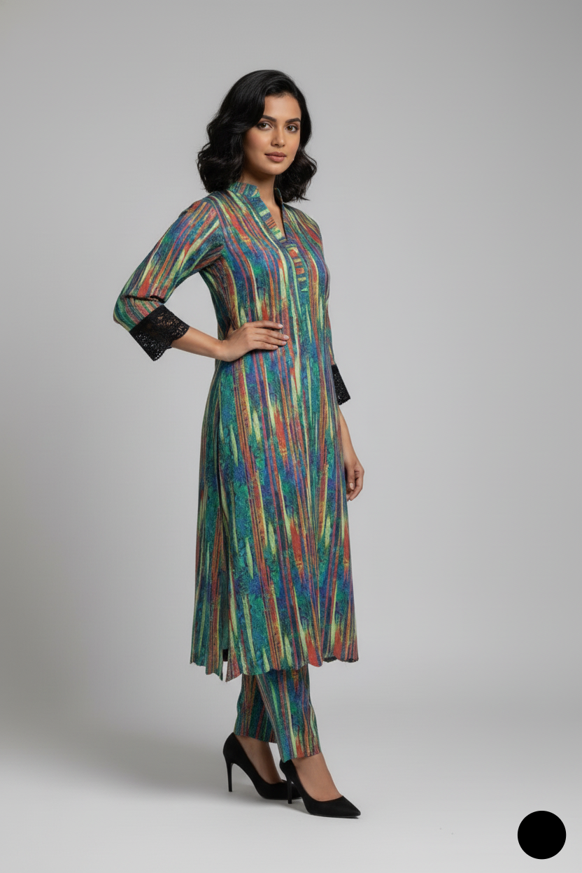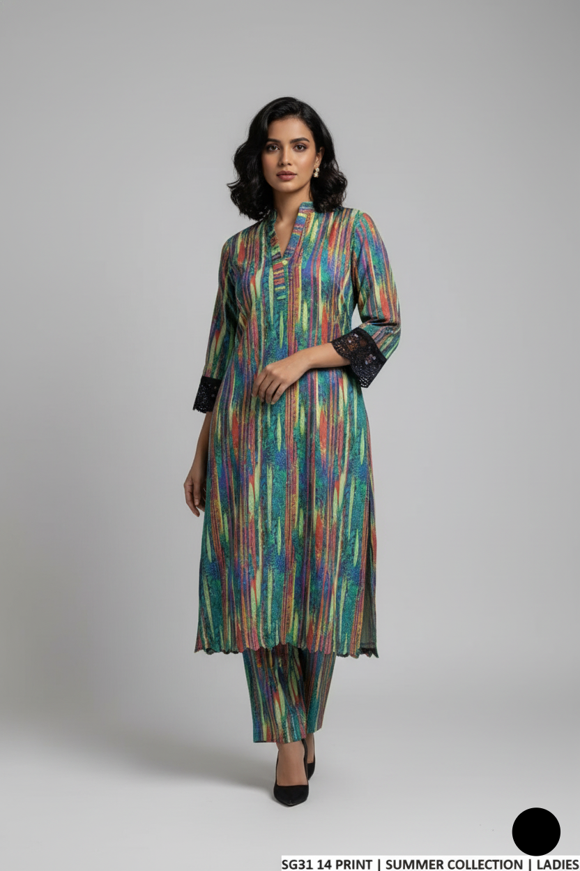 This lightweight and stylish 2-piece outfit features a classic straight shirt silhouette, perfect for everyday elegance. Crafted from soft and breathable lawn fabric, both the shirt and trouser offer comfort and ease of wear, making it ideal for warm weather. With a longer shirt length of 41 to 43 inches, this outfit adds a touch of sophistication while remaining effortless and breezy. Although it’s a two-piece set without a dupatta, it provides the perfect base for accessorizing or layering to create your own unique look. Weighing just 0.350 KG, it’s easy to wear and style throughout the day.