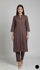 This stylish Goal Daman shirt is beautifully tailored from premium Marina fabric, offering both comfort and elegance. The matching Marina trouser complements the shirt perfectly, creating a cohesive and sophisticated look. The two-piece dupatta adds a touch of grace, making this outfit ideal for both casual gatherings and semi-formal occasions. With a shirt length of 42/44 inches and a lightweight 0.450 kg design, this ensemble is perfect for those who appreciate style, comfort, and durability in one refined outfit.