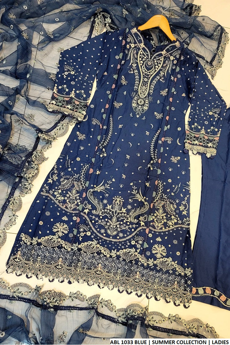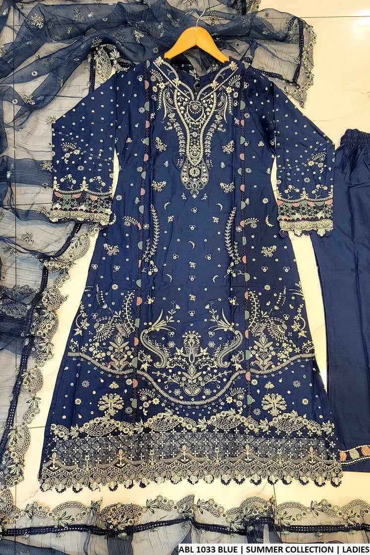 This sophisticated 3-piece ensemble features an A-line shirt crafted from soft and breathable cotton fabric, providing both comfort and style. The matching cotton trousers complement the look, while the organza dupatta adds a delicate and elegant touch with its lightweight and sheer texture. With a shirt length of 45 to 47 inches and a total weight of 0.850 kg, this outfit is perfect for casual outings or semi-formal events.