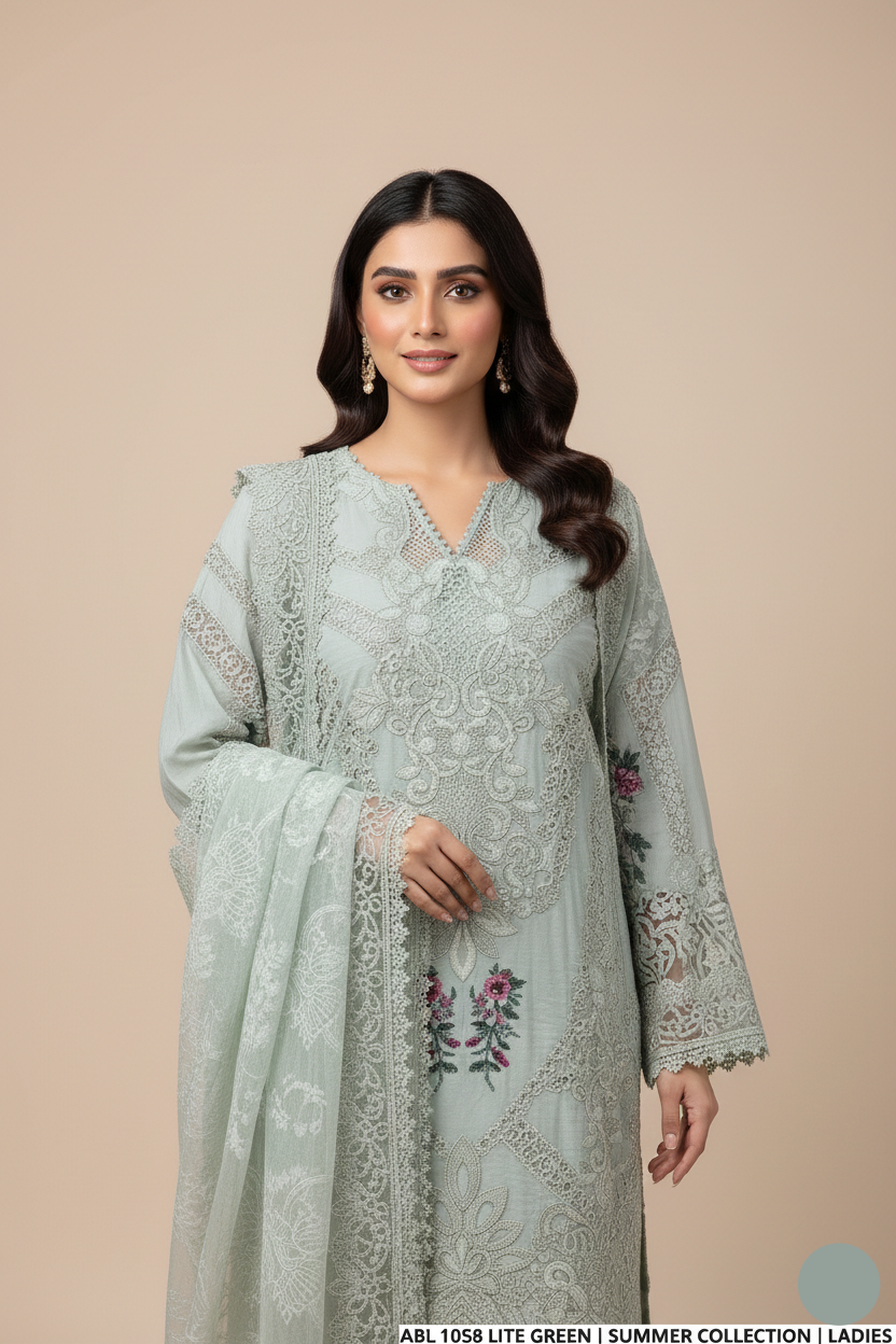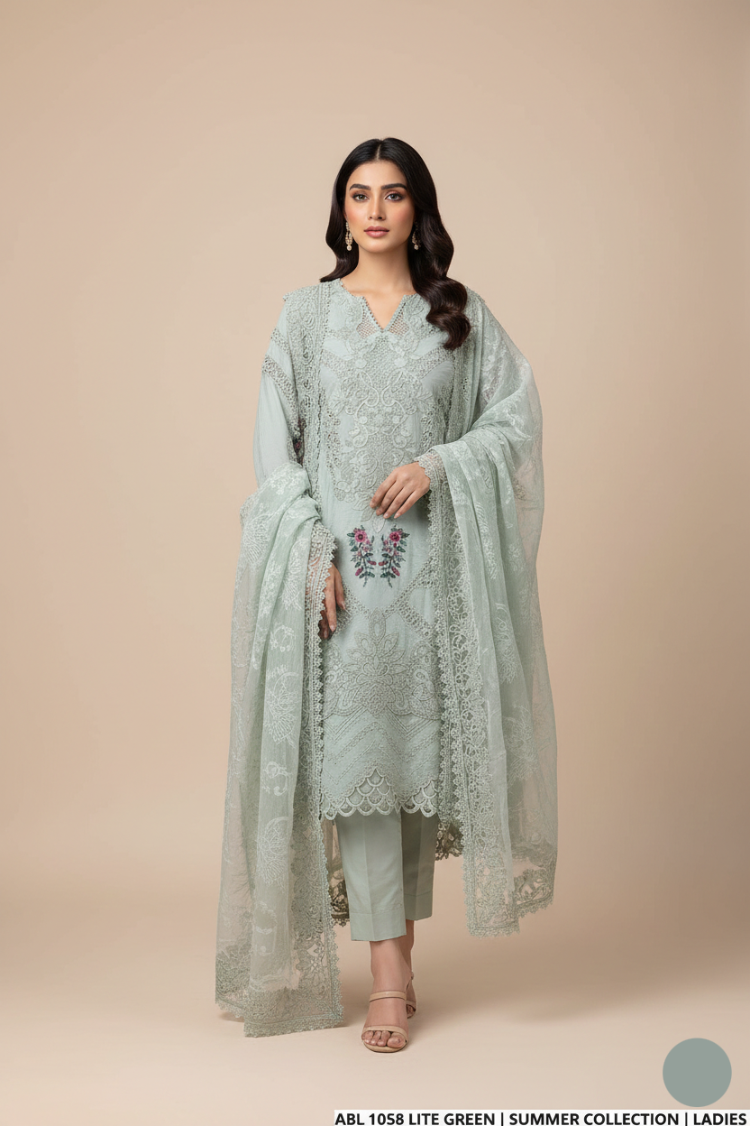 This stylish A-line 3-piece suit features a breathable soft cotton shirt and trousers, designed for maximum comfort and everyday elegance. The shirt length ranges from 45 to 47 inches, offering a flattering fit with a graceful flow. Paired with a delicate organza dupatta, this ensemble brings a touch of refinement to your look. Weighing just 0.950 KG, it’s a lightweight and versatile choice for casual or semi-formal occasions.