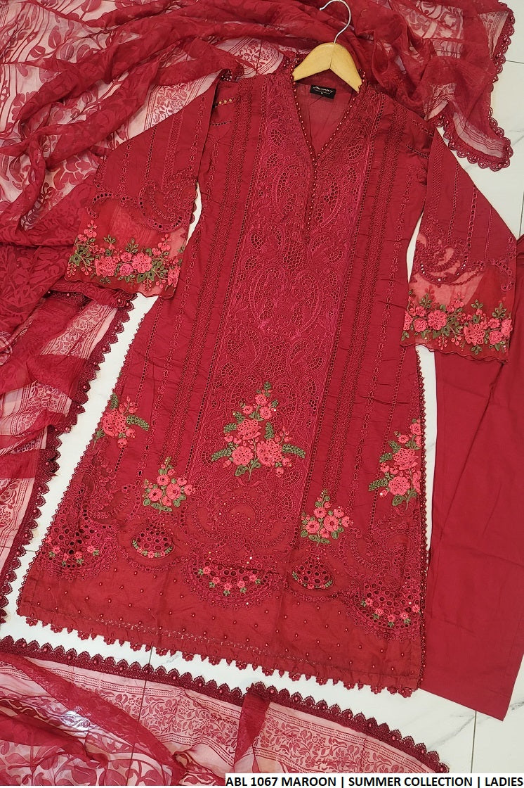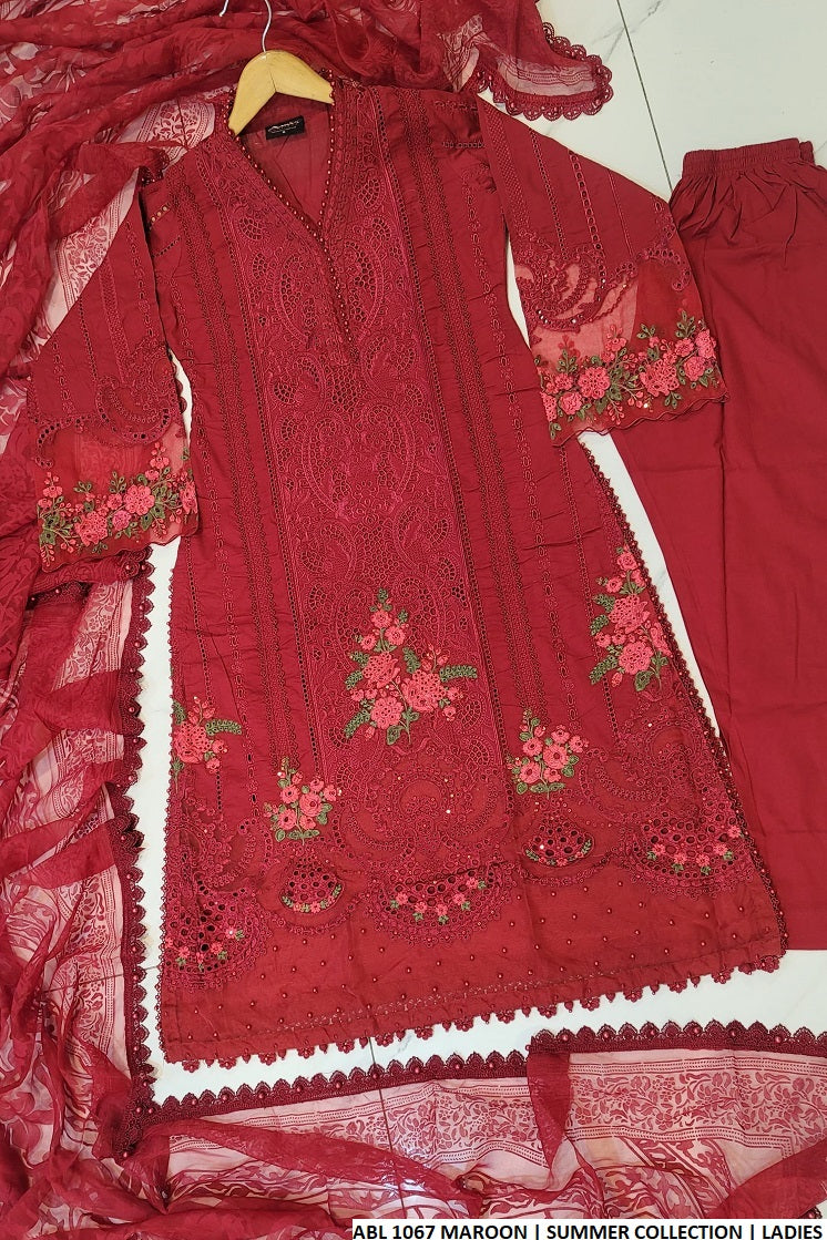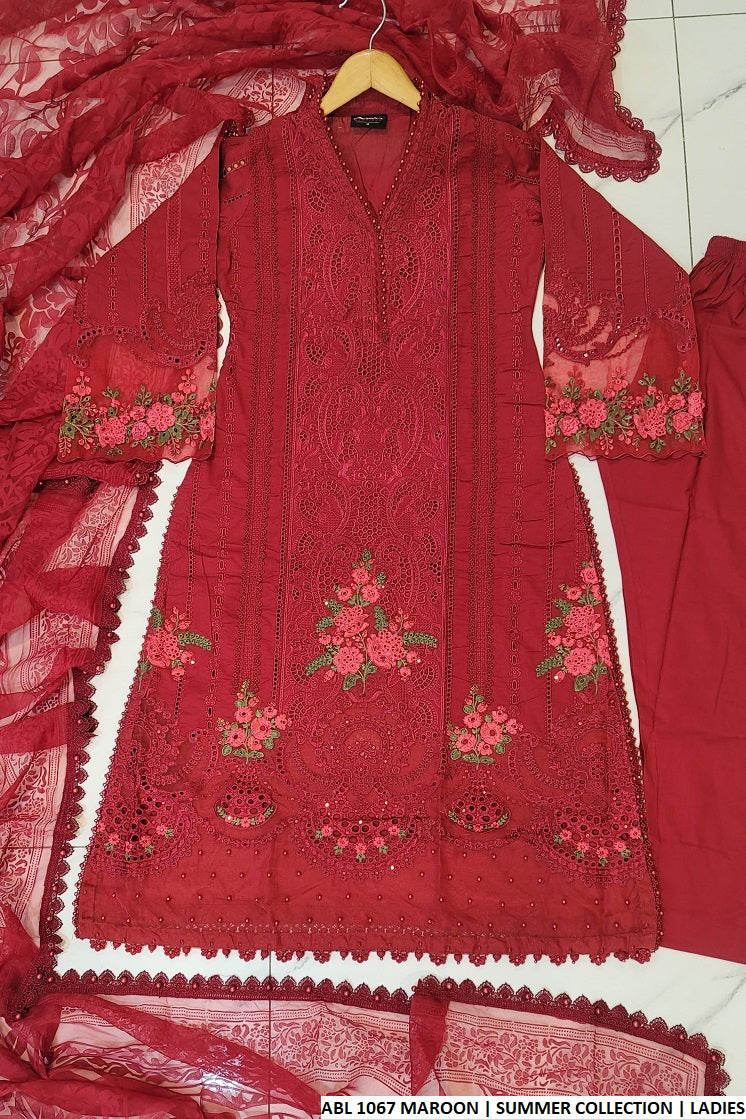 This elegant outfit features a cotton A-line shirt paired with matching cotton trousers, offering a comfortable yet stylish look. The shirt has a flattering length of 44 to 46 inches, making it suitable for various occasions. The ensemble is completed with a delicate organza dupatta, adding a touch of sophistication. Weighing just 0.950 kg, it is lightweight and easy to wear, ensuring both comfort and grace.