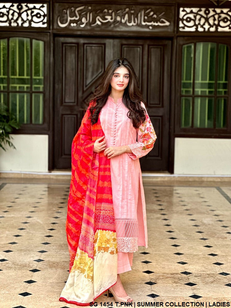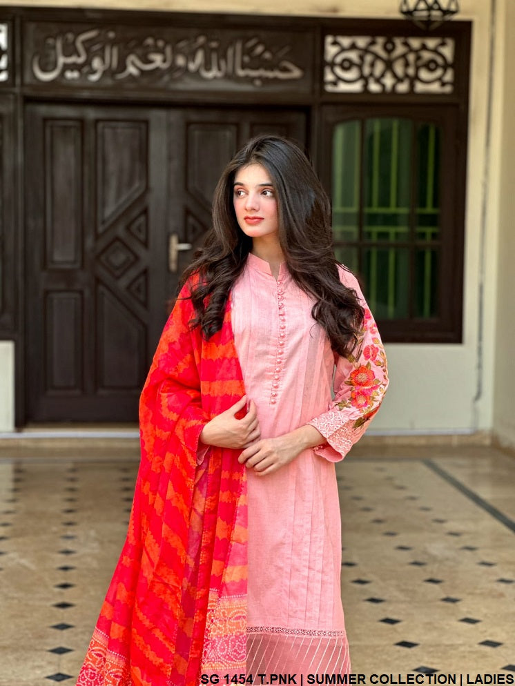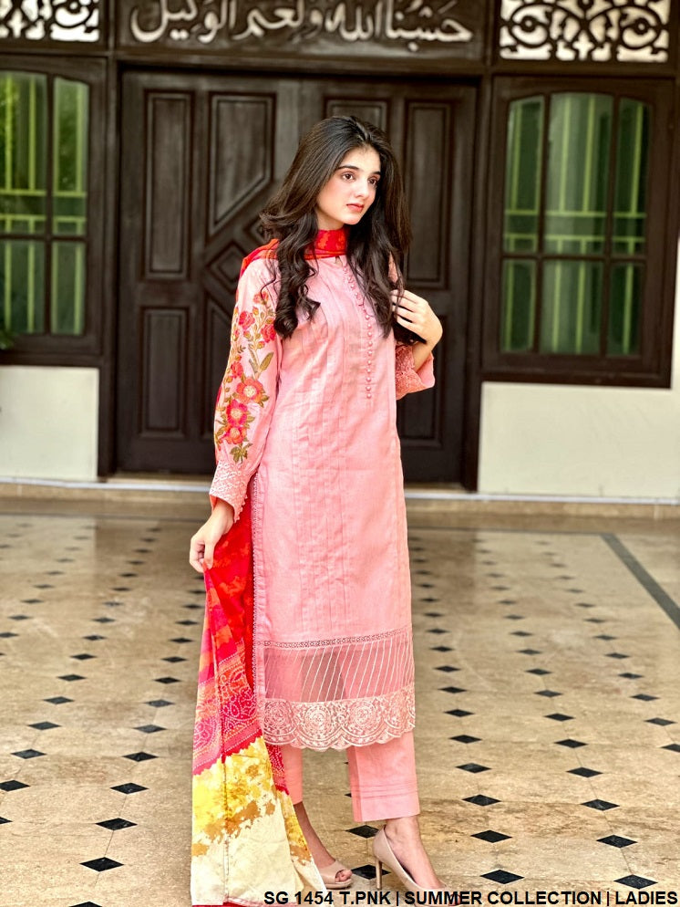 - This chic outfit is crafted from high-quality cotton fabric, ensuring comfort and breathability. The straight shirt, available in lengths of 42 or 44 inches, provides a sleek and modern fit. The trousers, also made from cotton, offer a coordinated and stylish look. To complete the ensemble, a digitally printed dupatta adds a vibrant and contemporary touch. With a total weight of 0.550 kg, this outfit is lightweight and perfect for both casual and semi-formal occasions, combining style and comfort effortlessly..
