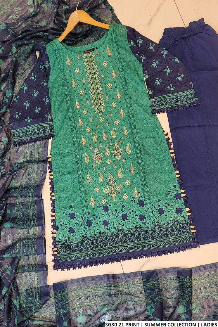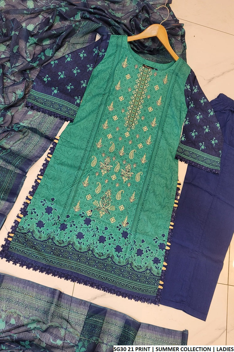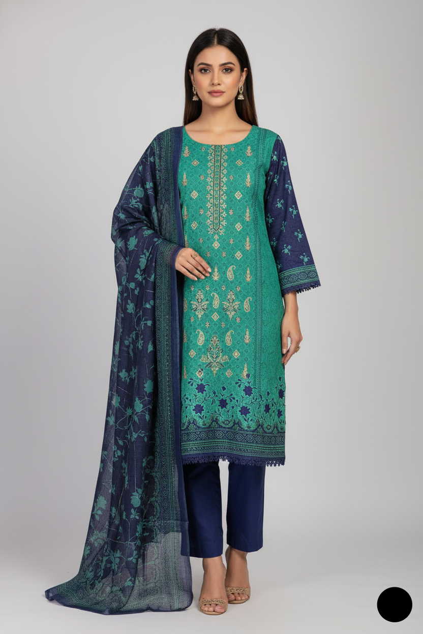 This stylish A-line shirt, crafted from premium lawn fabric, offers a blend of comfort and style. Paired with matching lawn trousers and a digital print dupatta, this ensemble adds elegance to any occasion. Available in shirt lengths of 39 and 41, it ensures a tailored fit. With a weight of just 0.450 kg, this outfit is lightweight and perfect for everyday wear or special events.